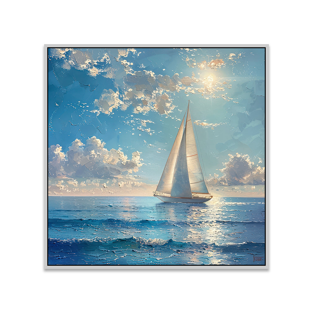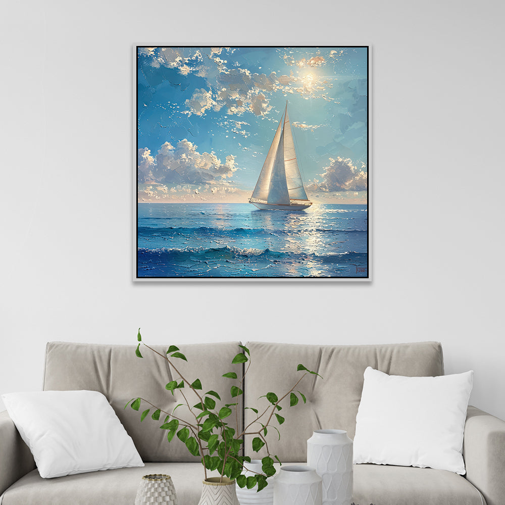 Blue Ocean Sailboat on the Water with Sunny Sky Canvas Wall Painting