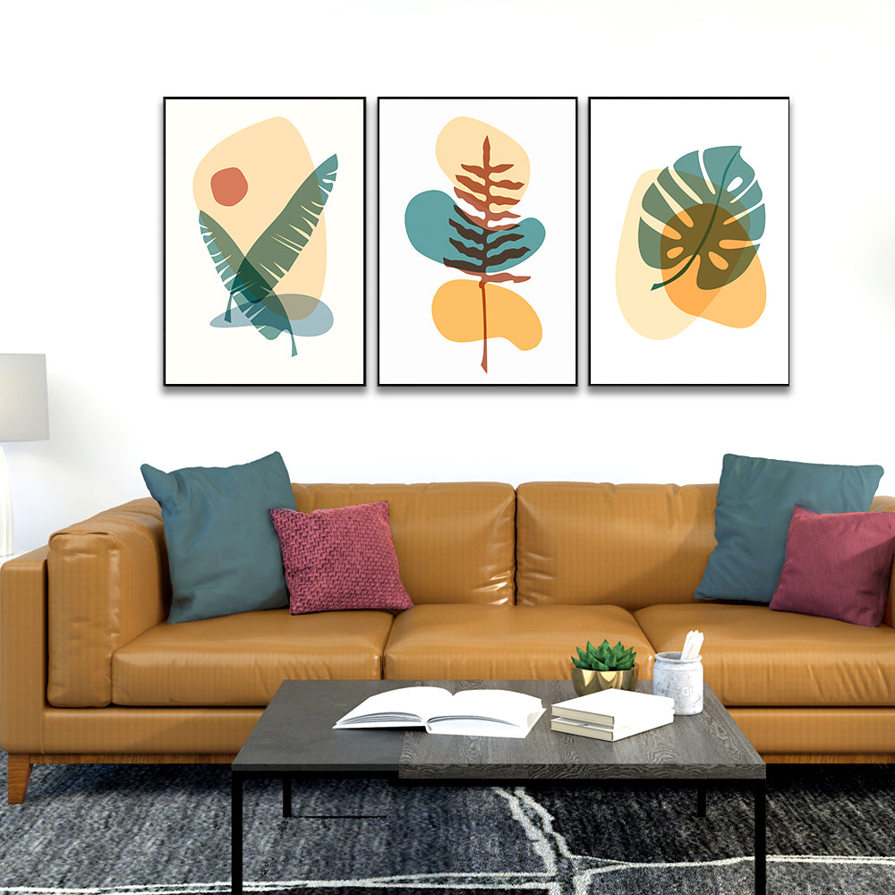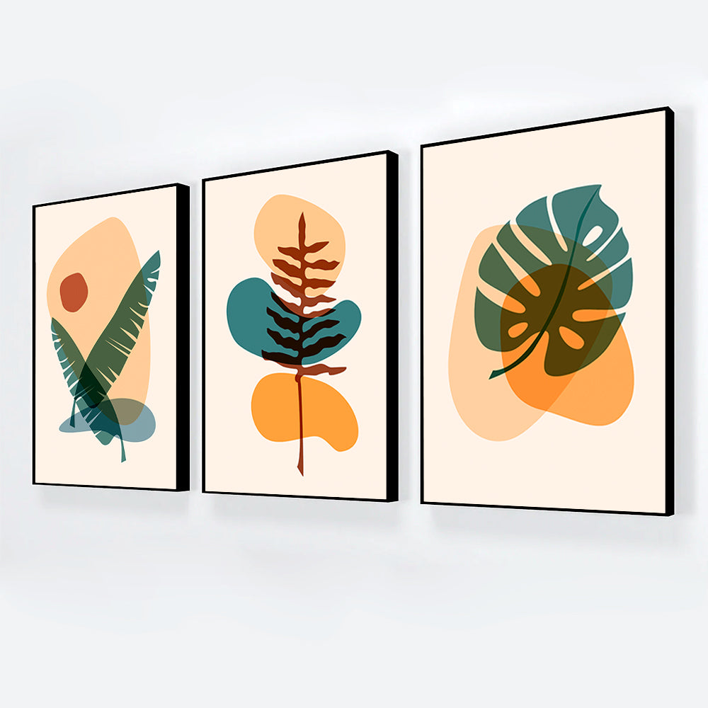Boho Botanical Wall Art Minimalist Plant Eucalyptus Leaves Cactus Framed Wall Art Set of 3