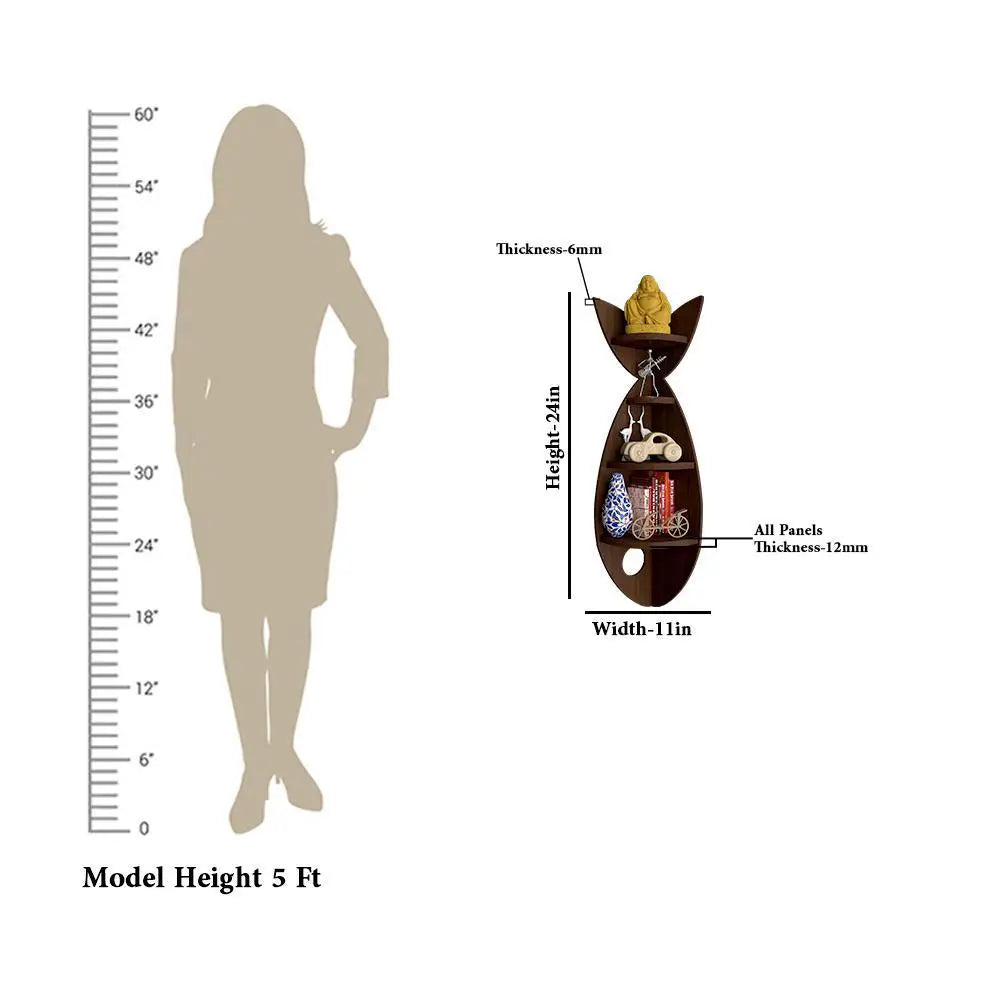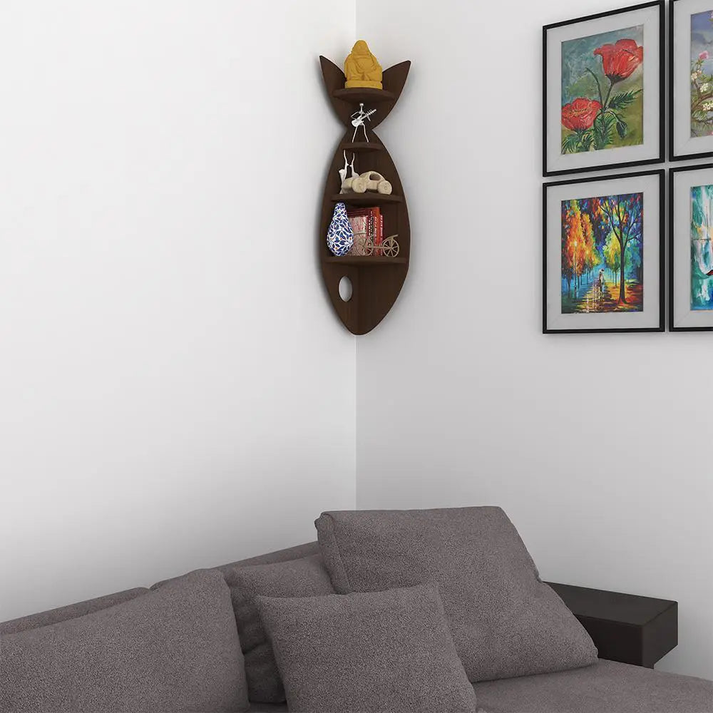 Fish Shape Wood Corner Wall Shelf / Book Shelf,Walnut Finish