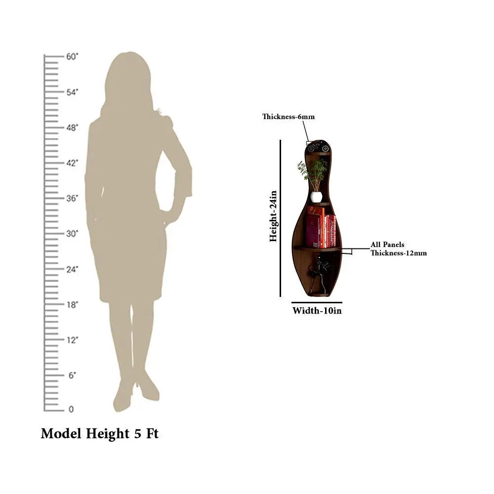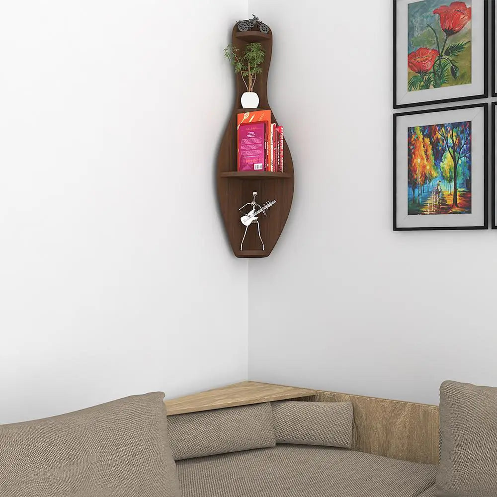 Bowling Shape Wood Corner Wall Shelf / Book Shelf,Walnut Finish