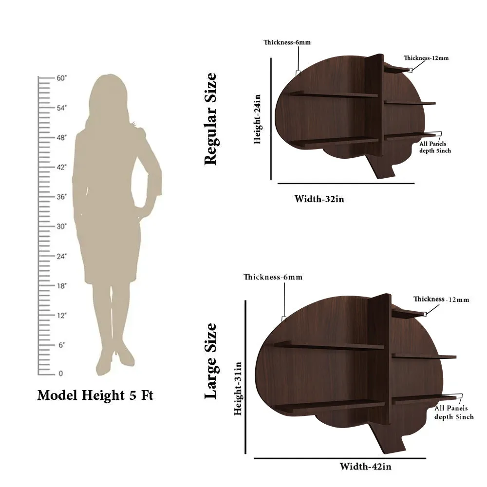 Brain Shape Backlit Wood Wall Shelf / Book Shelf / Night Light, Walnut Finish