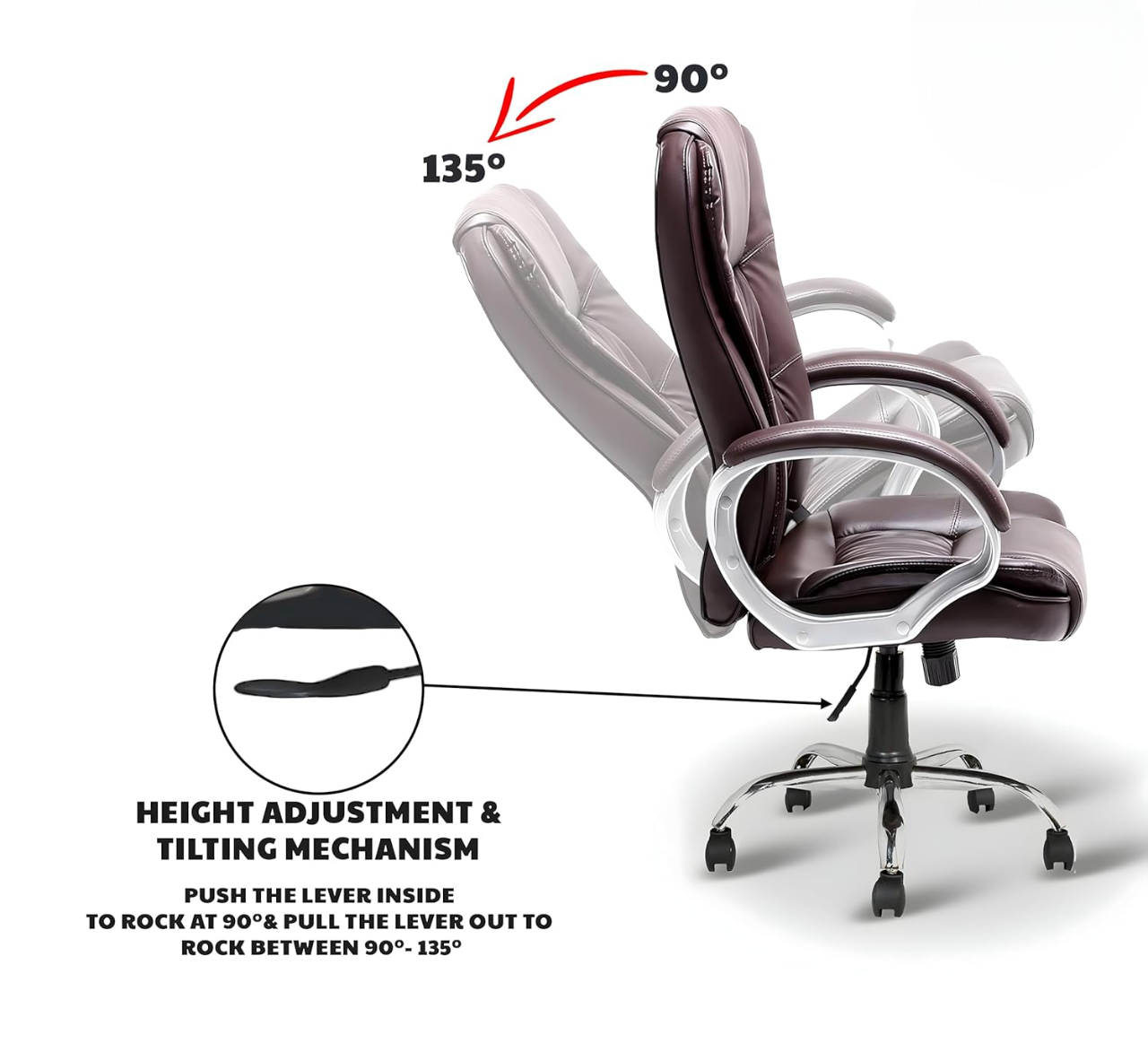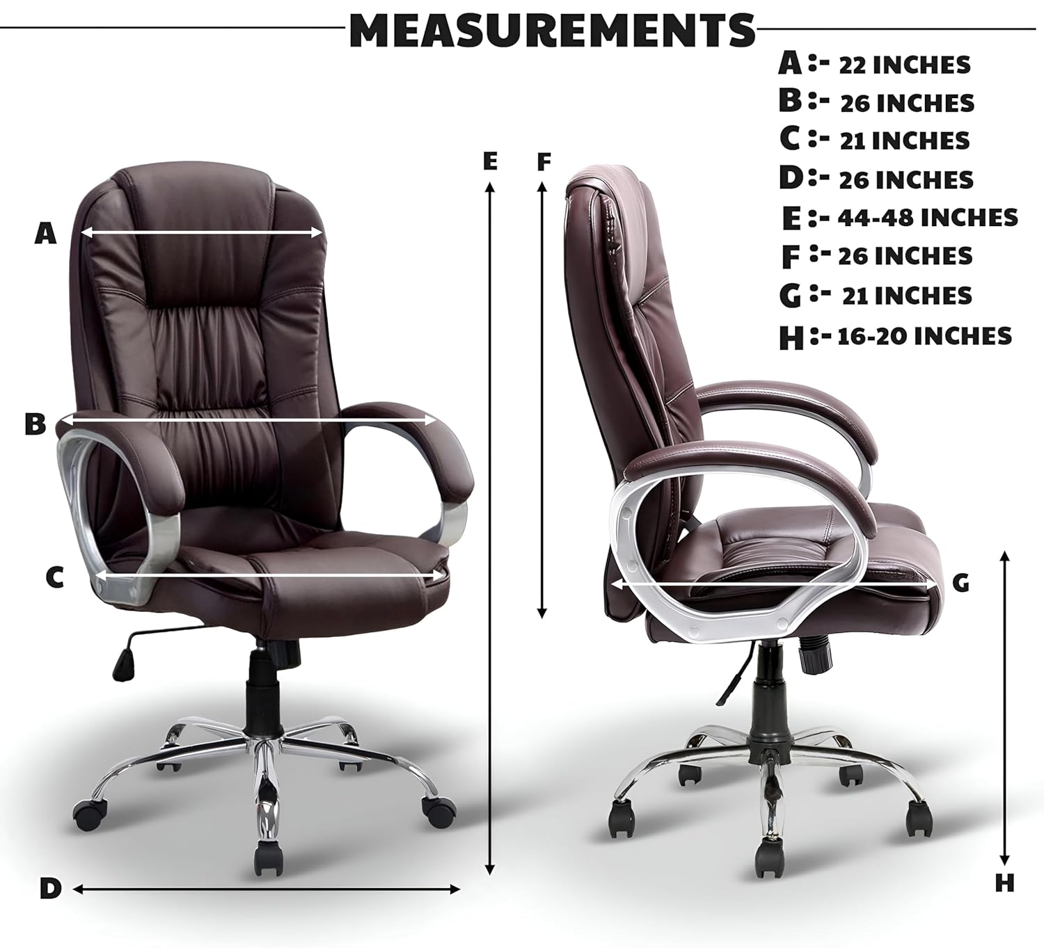 Brown Leatherette Office Chair with Fixed Armrests | Premium Home Office Desk Swivel Seat | Heavy Duty Chrome Base