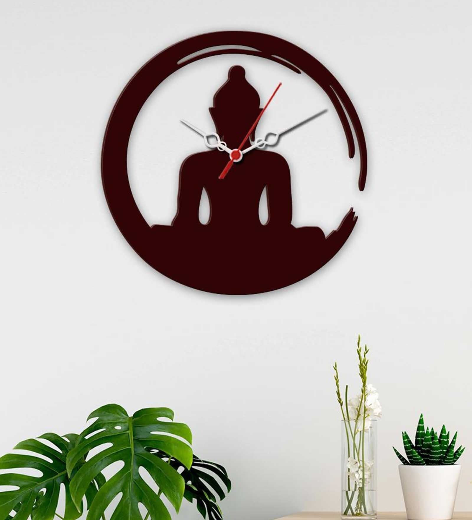 Brown MDF Gautam Buddha Inspired Modern Wall Clock