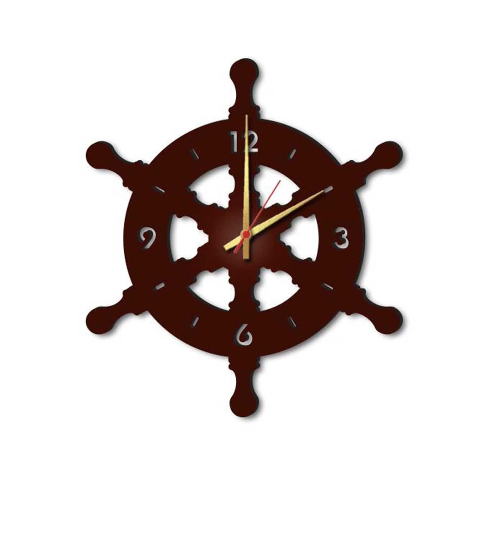Brown MDF Ship Wheel Modern Wall Clock