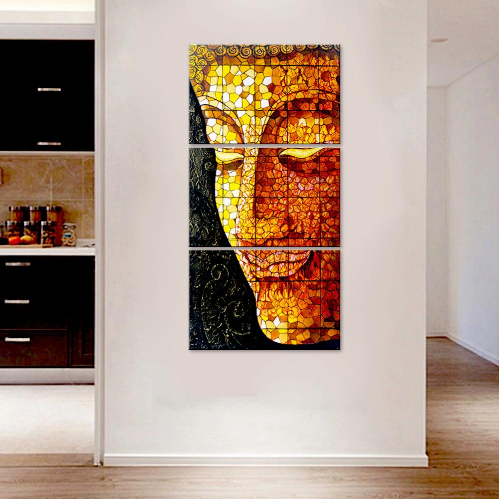 Buddha Face Glass Texture 3 Pieces Canvas Painting