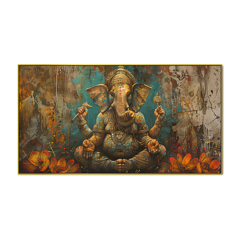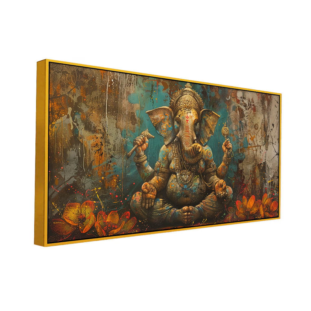 Canvas Wall Painting – Vintage Ganesha for Traditional Interiors
