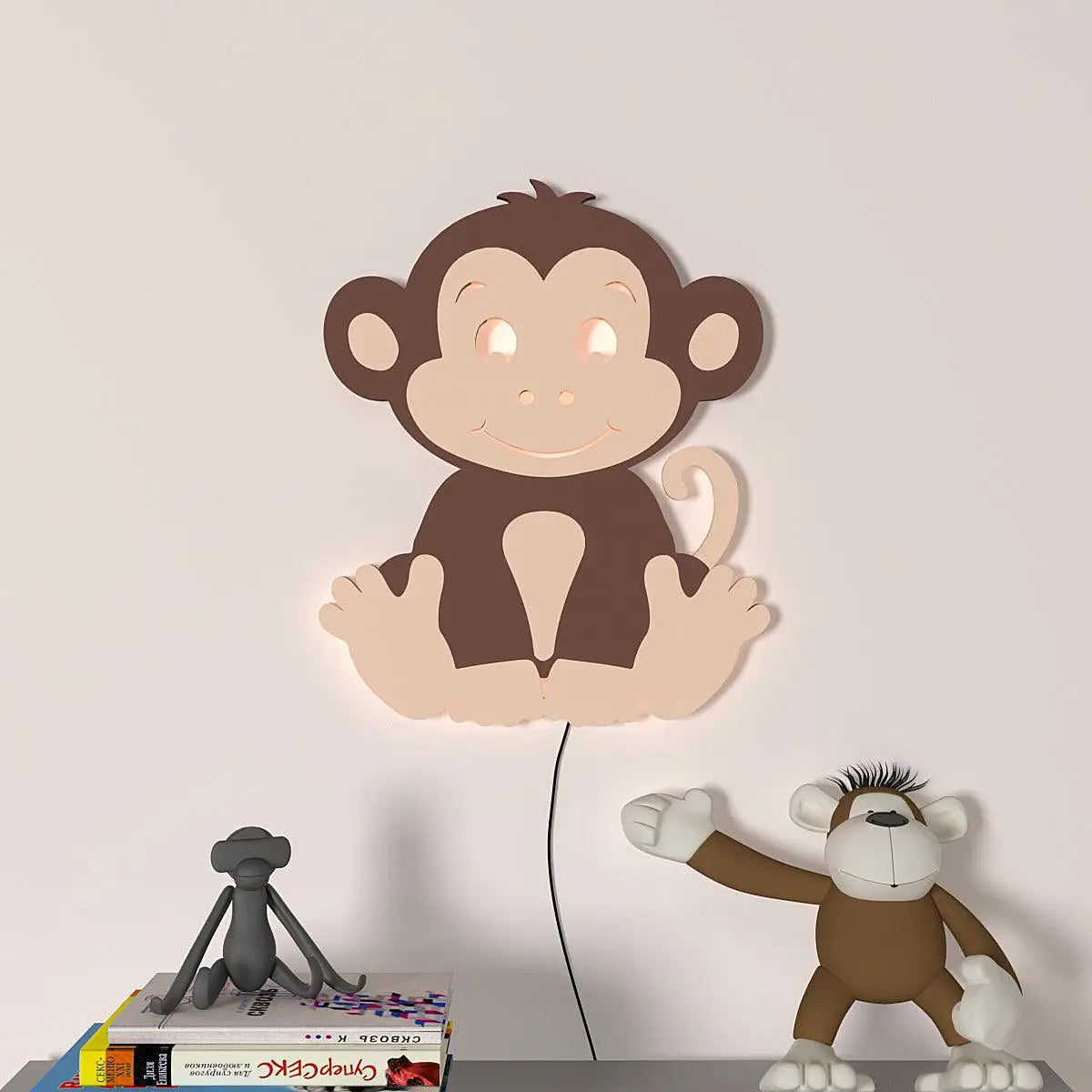 Cheerful Monkey Baby Backlit Wooden Wall Décor