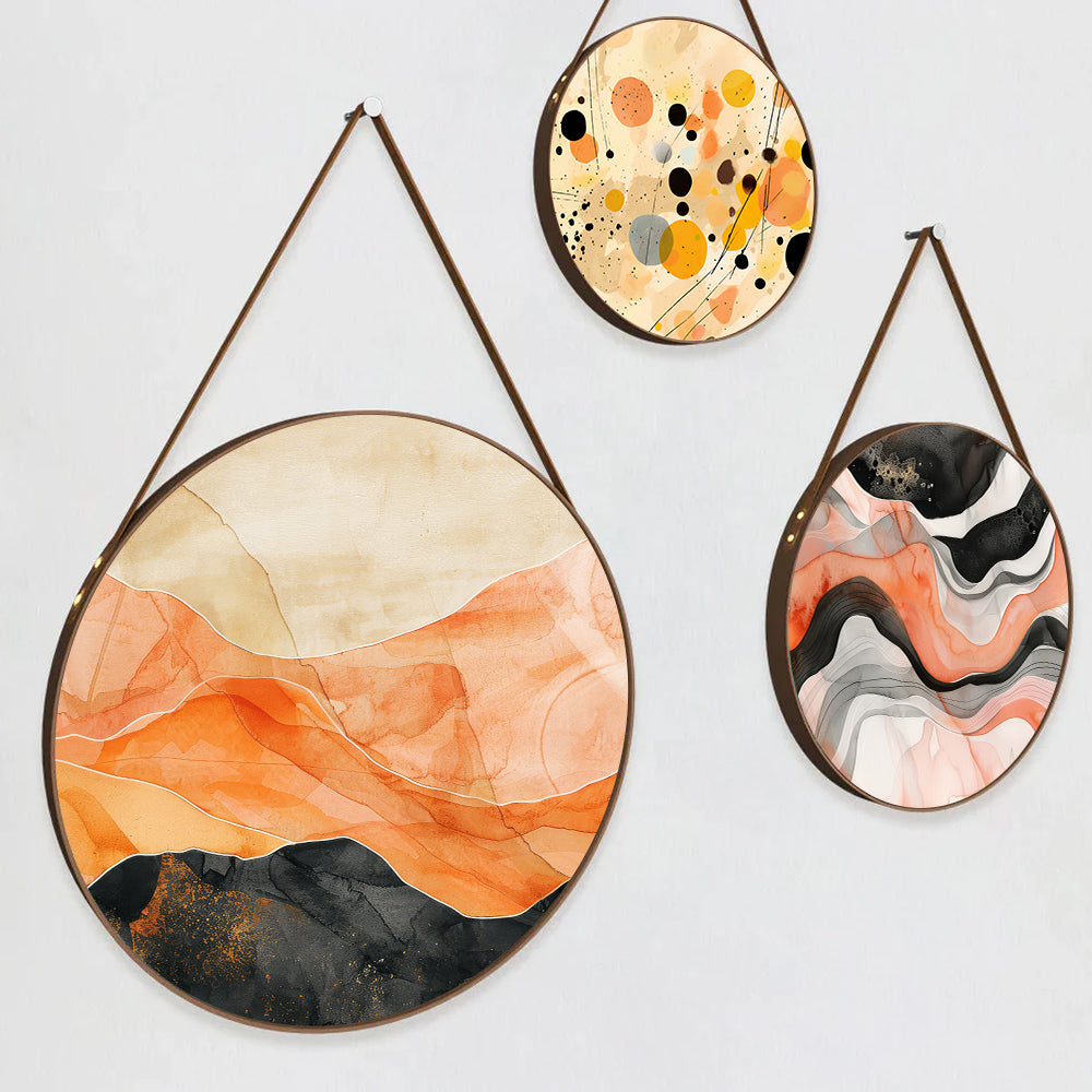 Circular Serenity Modern Digital Printed Round Framed Canvas Wall Painting - Set of 3