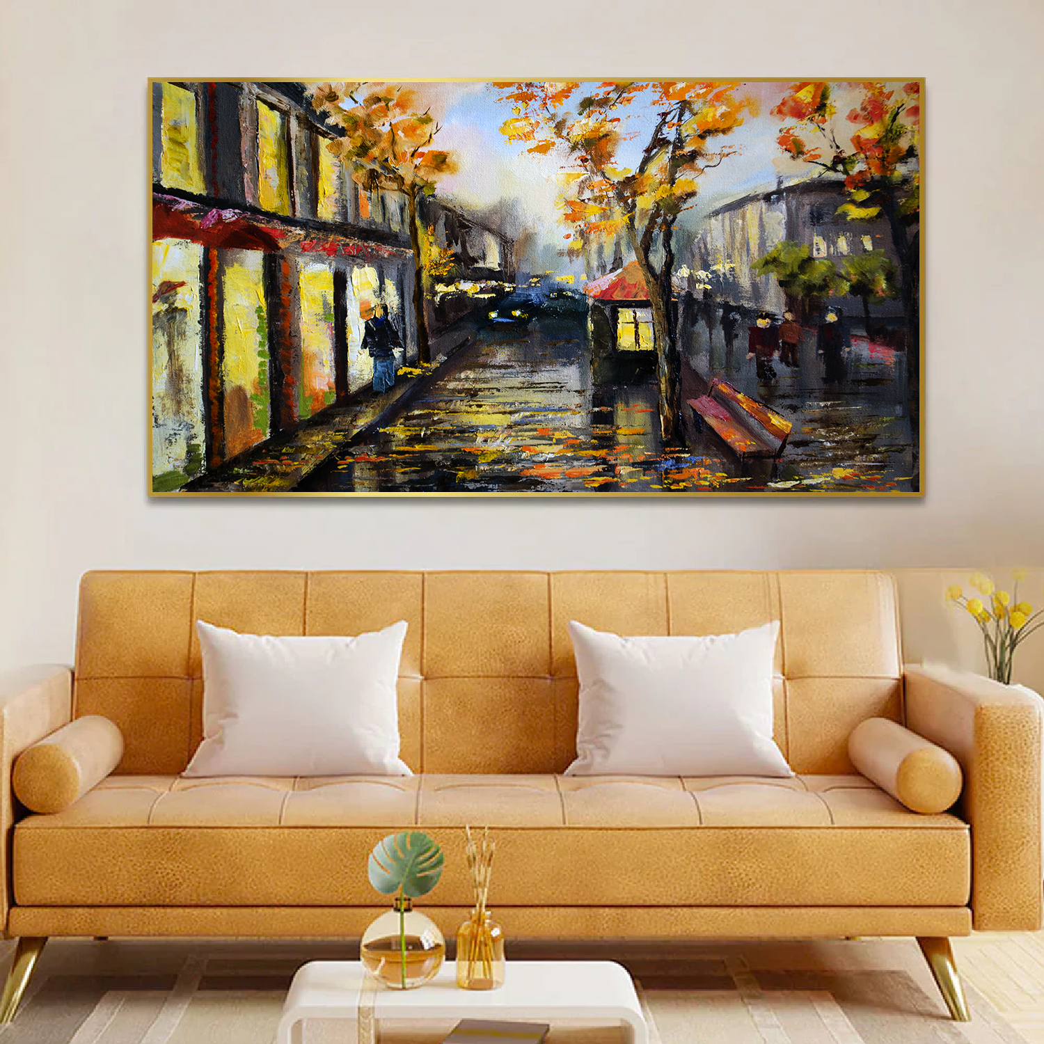 City in Yellow Shade Modern Cityscape Canvas Wall Painting