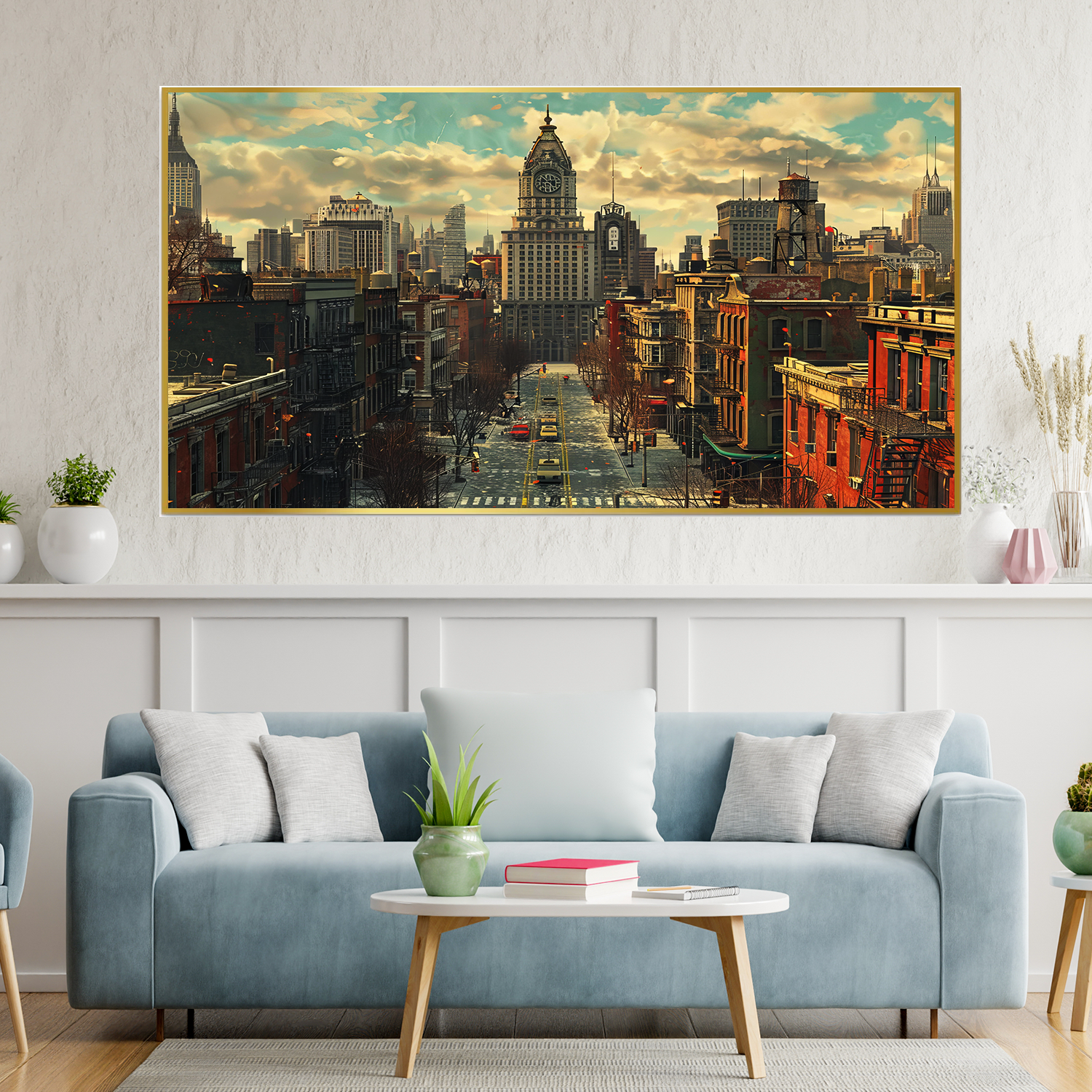 Cityscape Serenity Canvas Wall Painting with Floating Frame