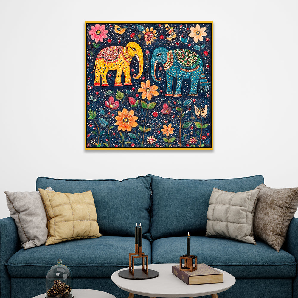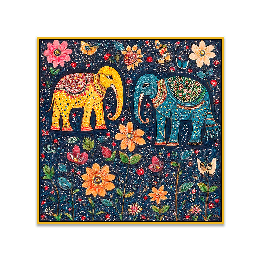 Classic Madhubani Wall Painting with Colorful Depictions of Nature and Wildlife