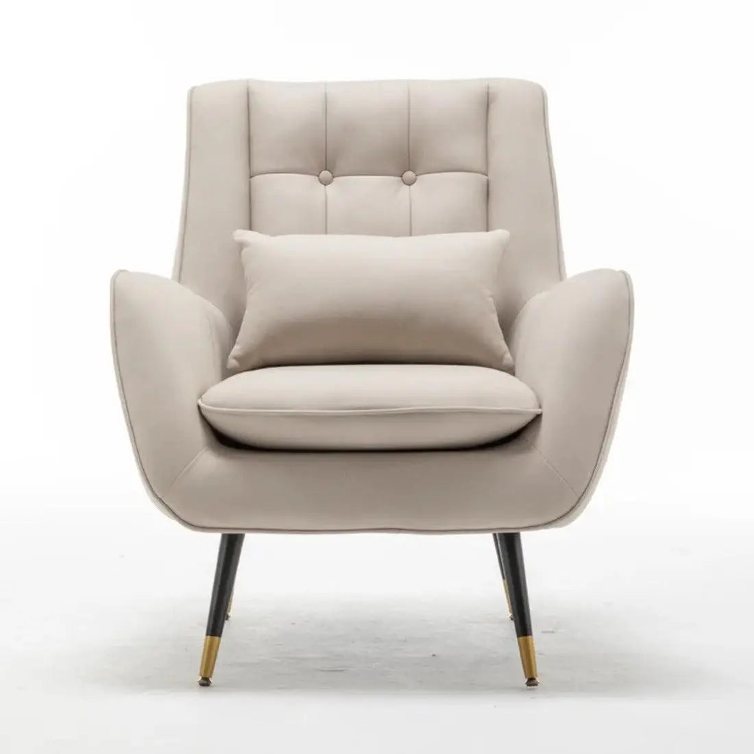 Classic Off-white Thick Padded Velvet Armchair with Cushion