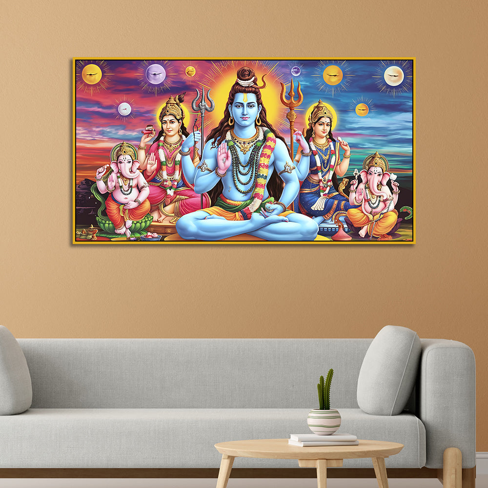 Classic Vintage Lord Shiva with Ganesha Family Wall Portrait – Spiritual Wall Paintings