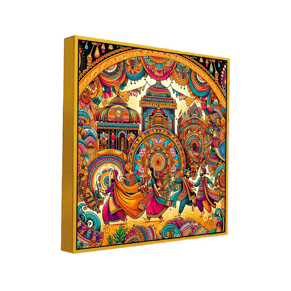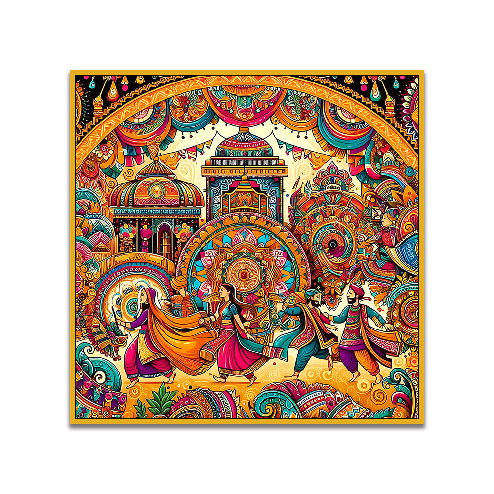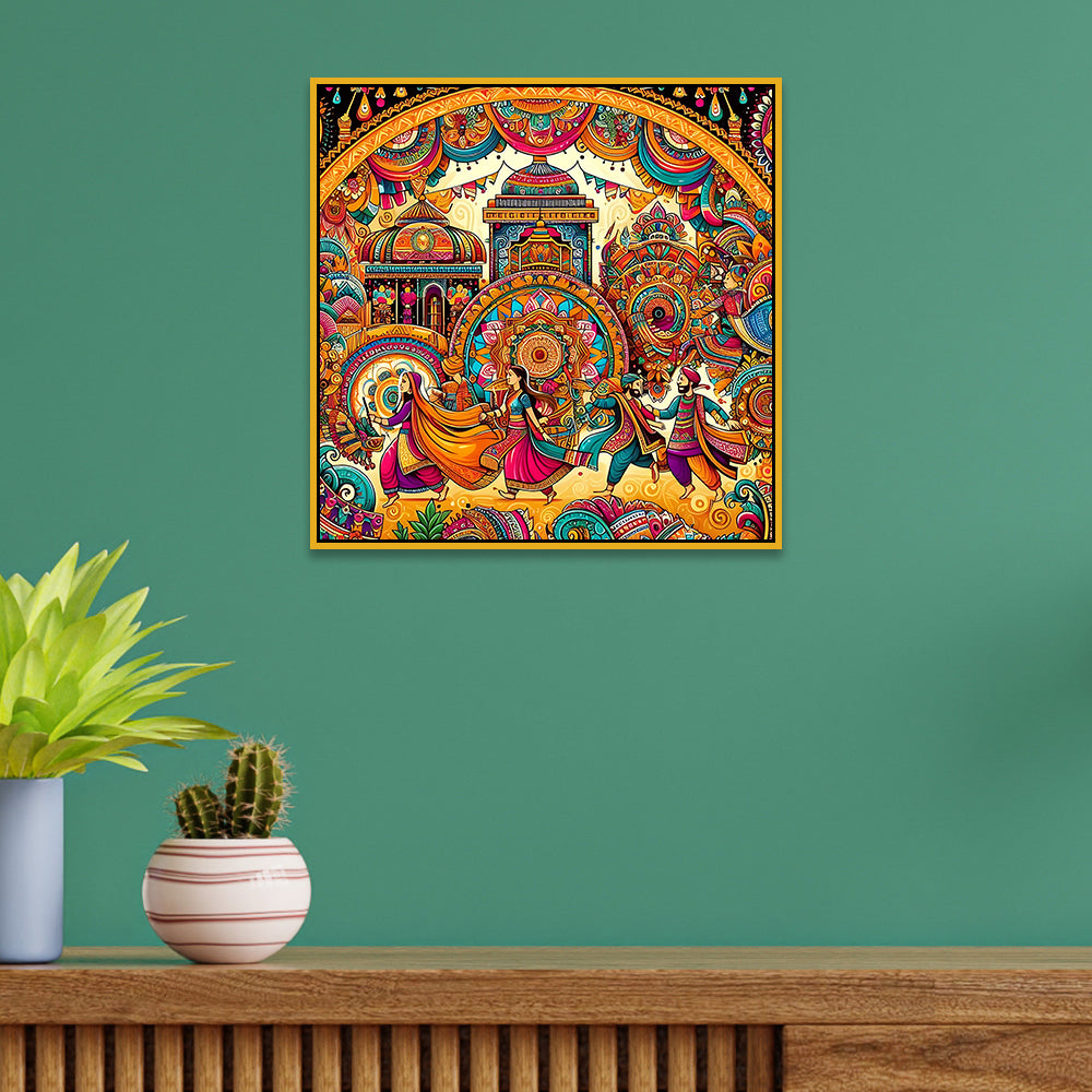 Colorful Indian Folk Art Madhubani Canvas Wall Painting