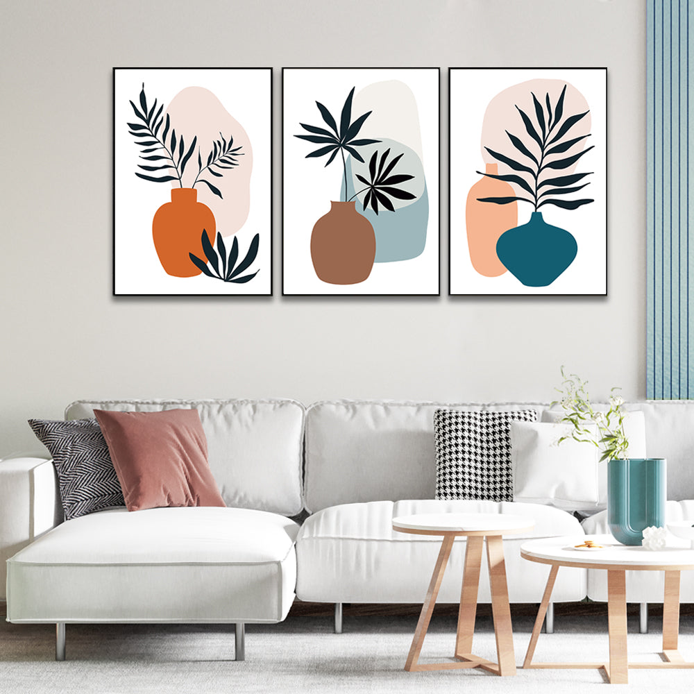 Contemporary Monochrome Art Posters Abstract Geometric Elements, Strokes, Leaves And Berries Set Of 3