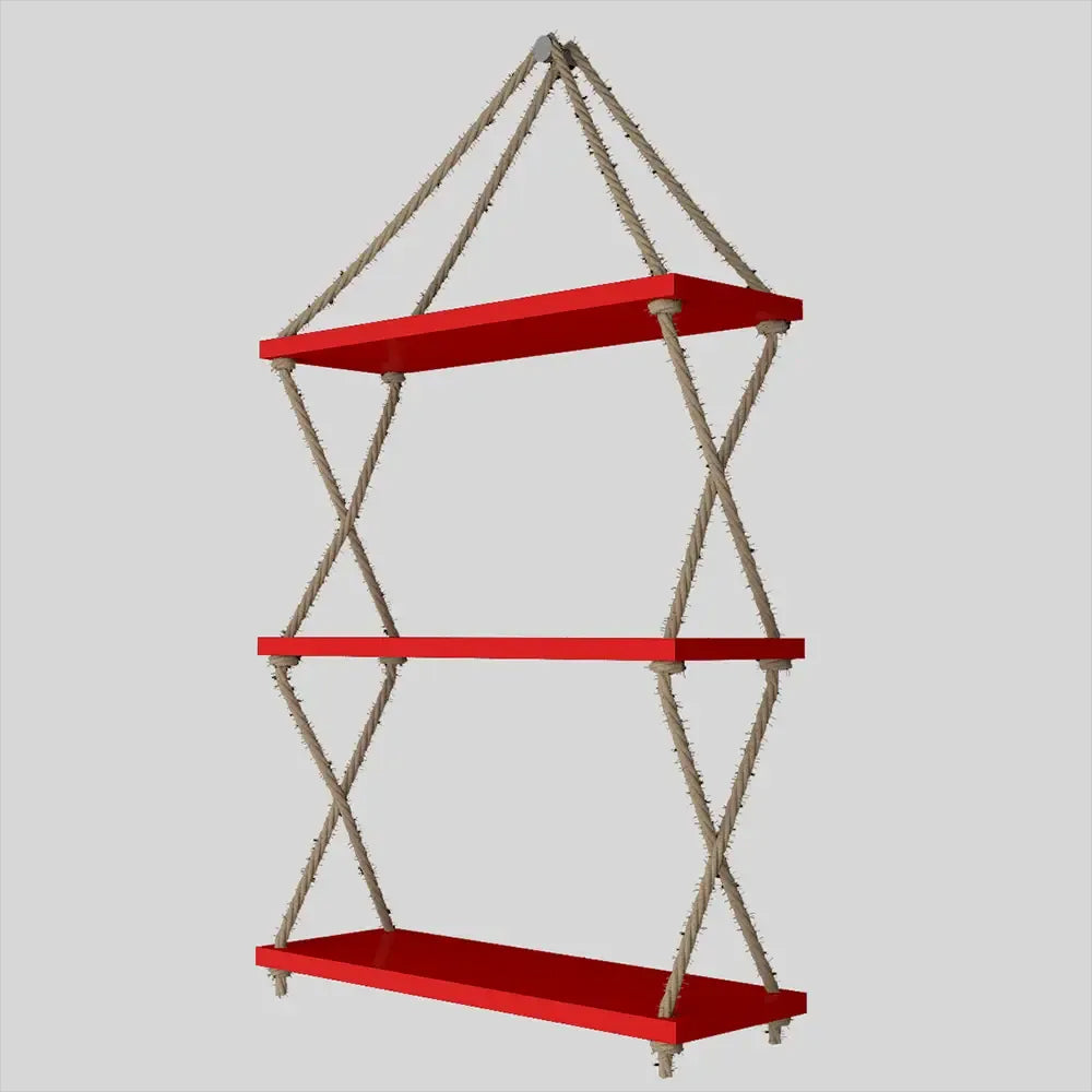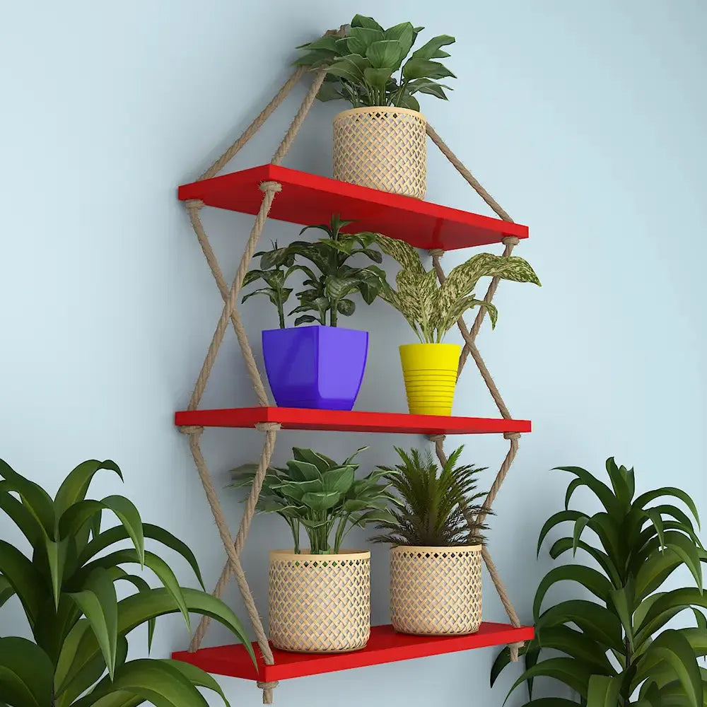 Cross Rope Wooden Wall Hanging Planter Shelf (Red Color)