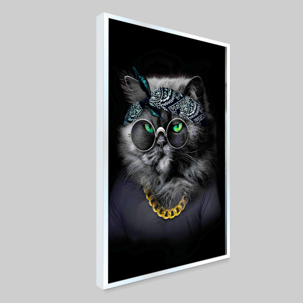 Cute Cat Face with Spectacles Canvas Printed Wall Paintings & Arts