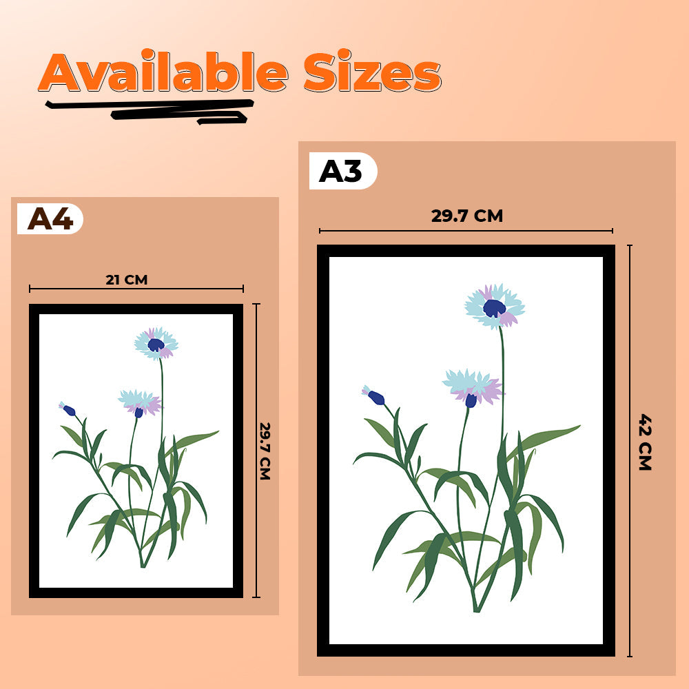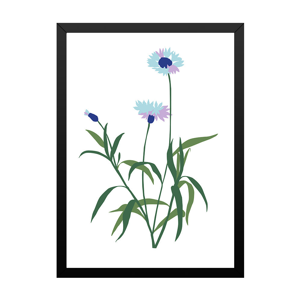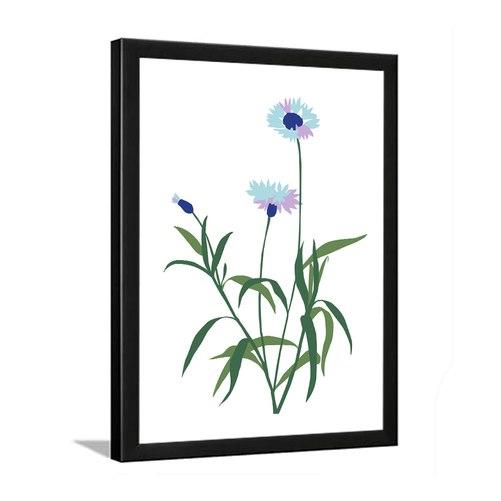 Delicate Blue Floral Botanical Prints Wall Art Painting with Black Frame