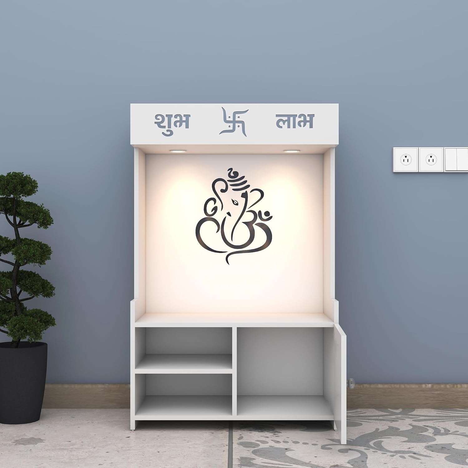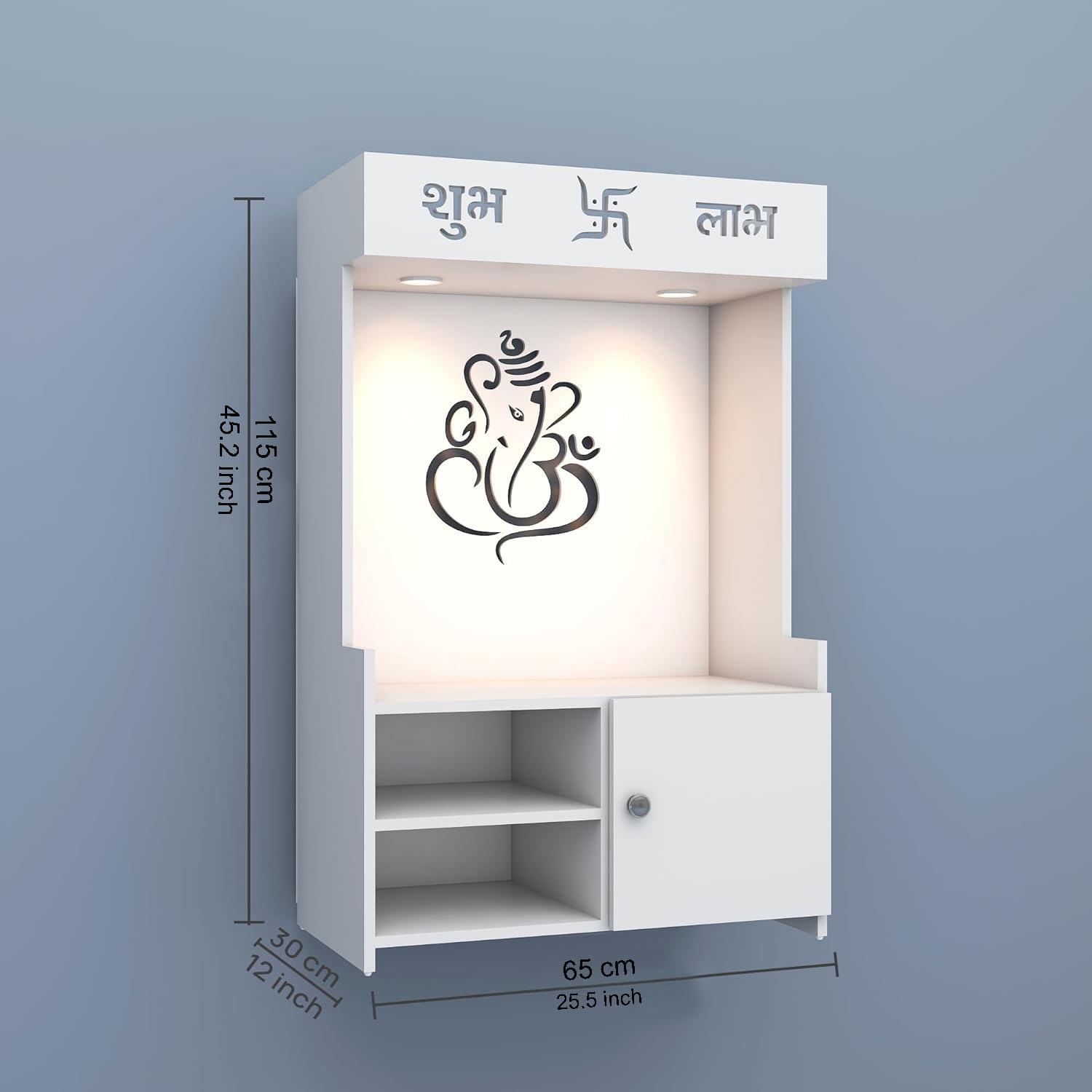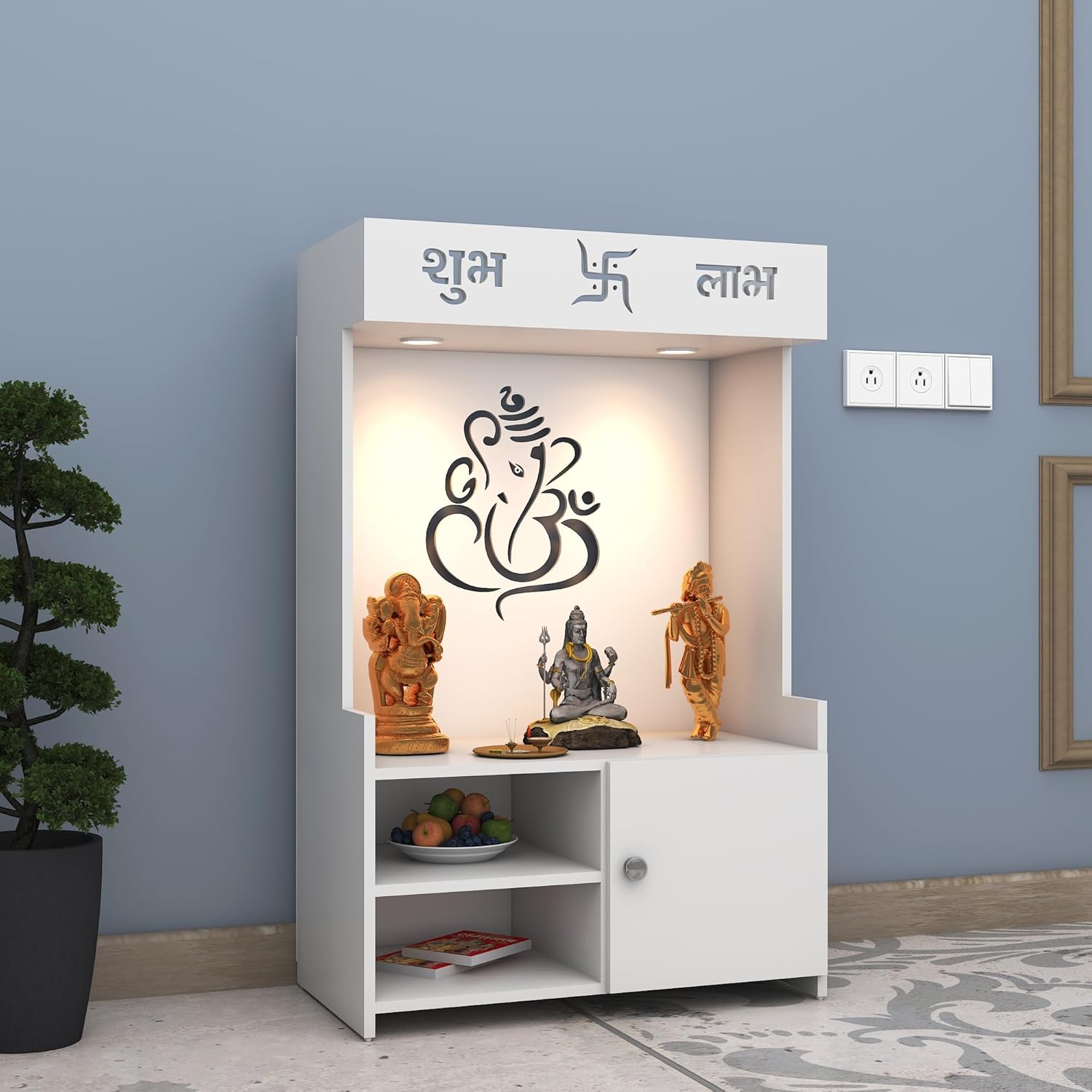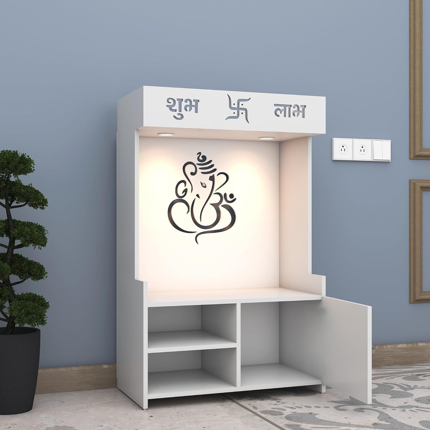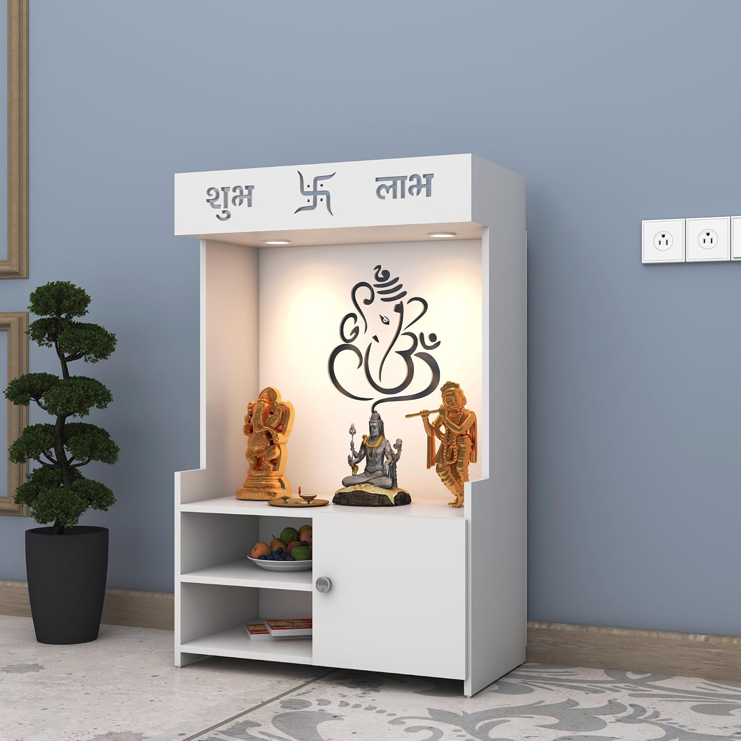Divine LED Light Puja Shelf Ganesha Temple Stand Home Mandir Puja Mandir for Home, Office - White