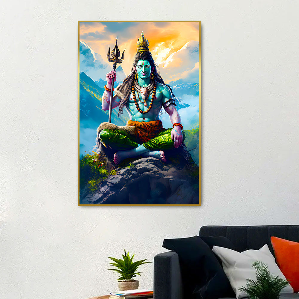 Divine Lord Shiva With Trishul Meditation Canvas Wall Paintings