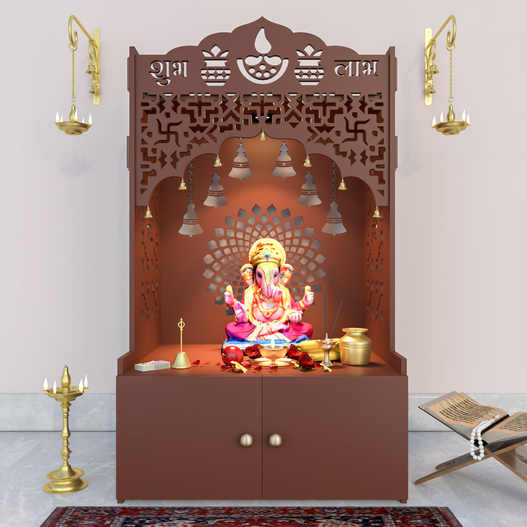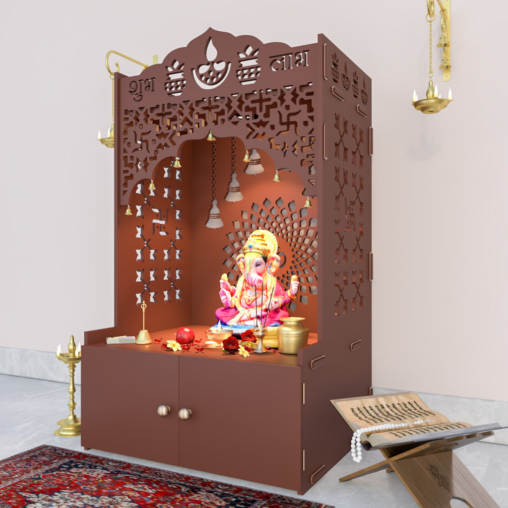 • Built-in drawers for storing incense, Diya’s, or prayer books