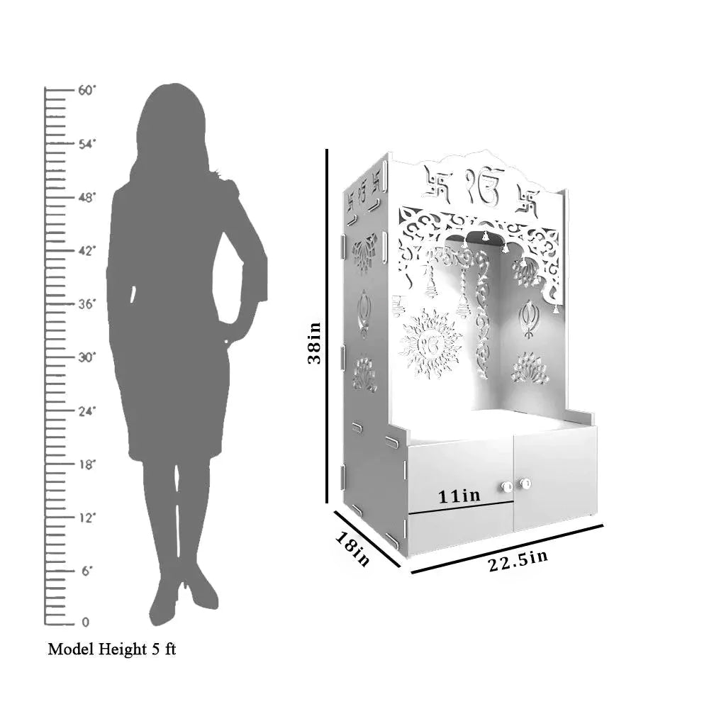 • Built-in drawers for storing incense, Diya’s, or prayer books