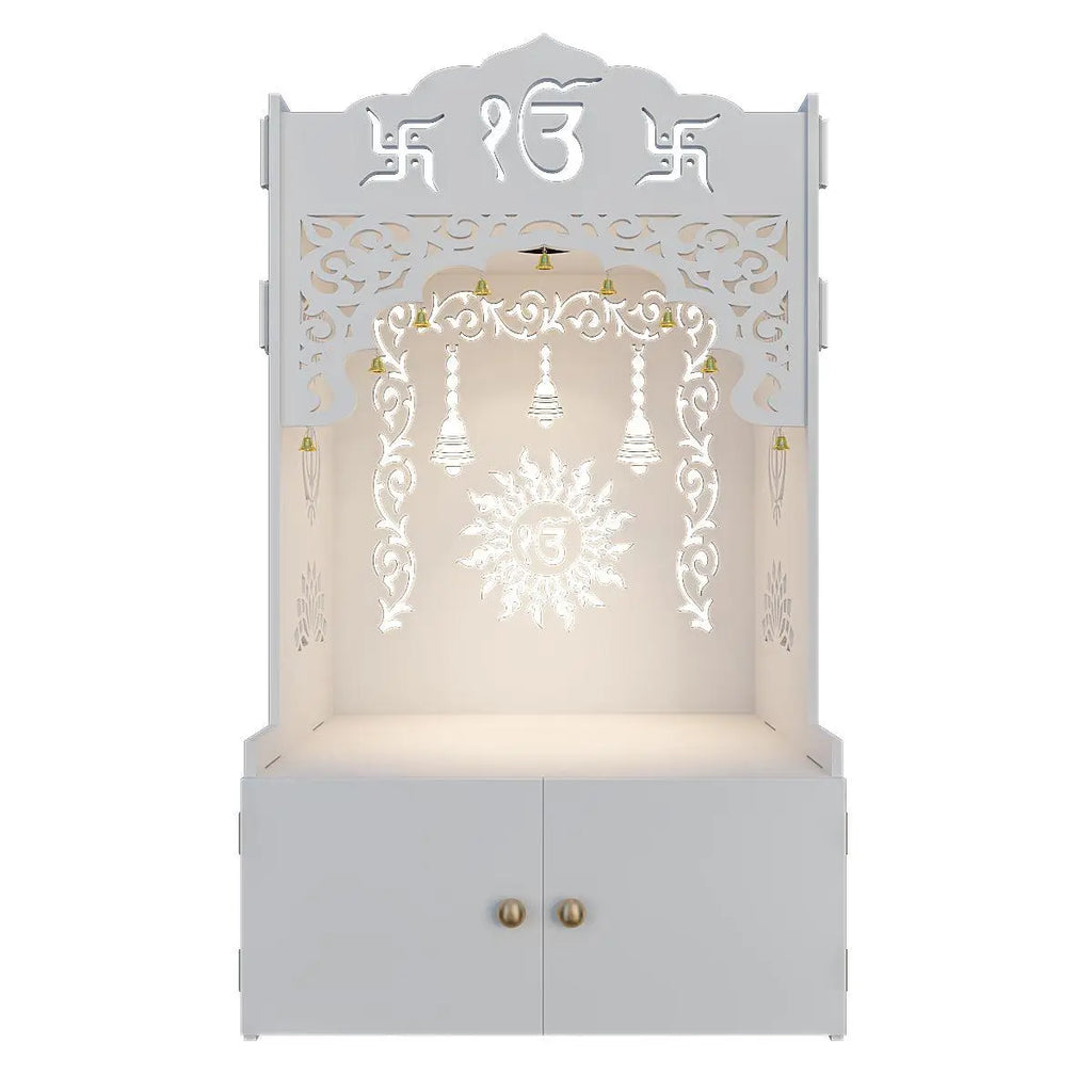 Ek-onkar Home Temple with Inbuilt Focus Light & Spacious Wooden Shelf- White