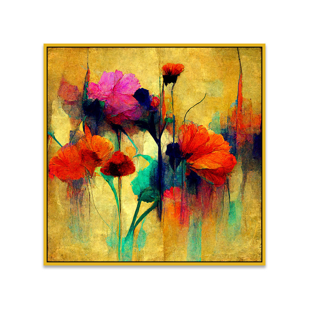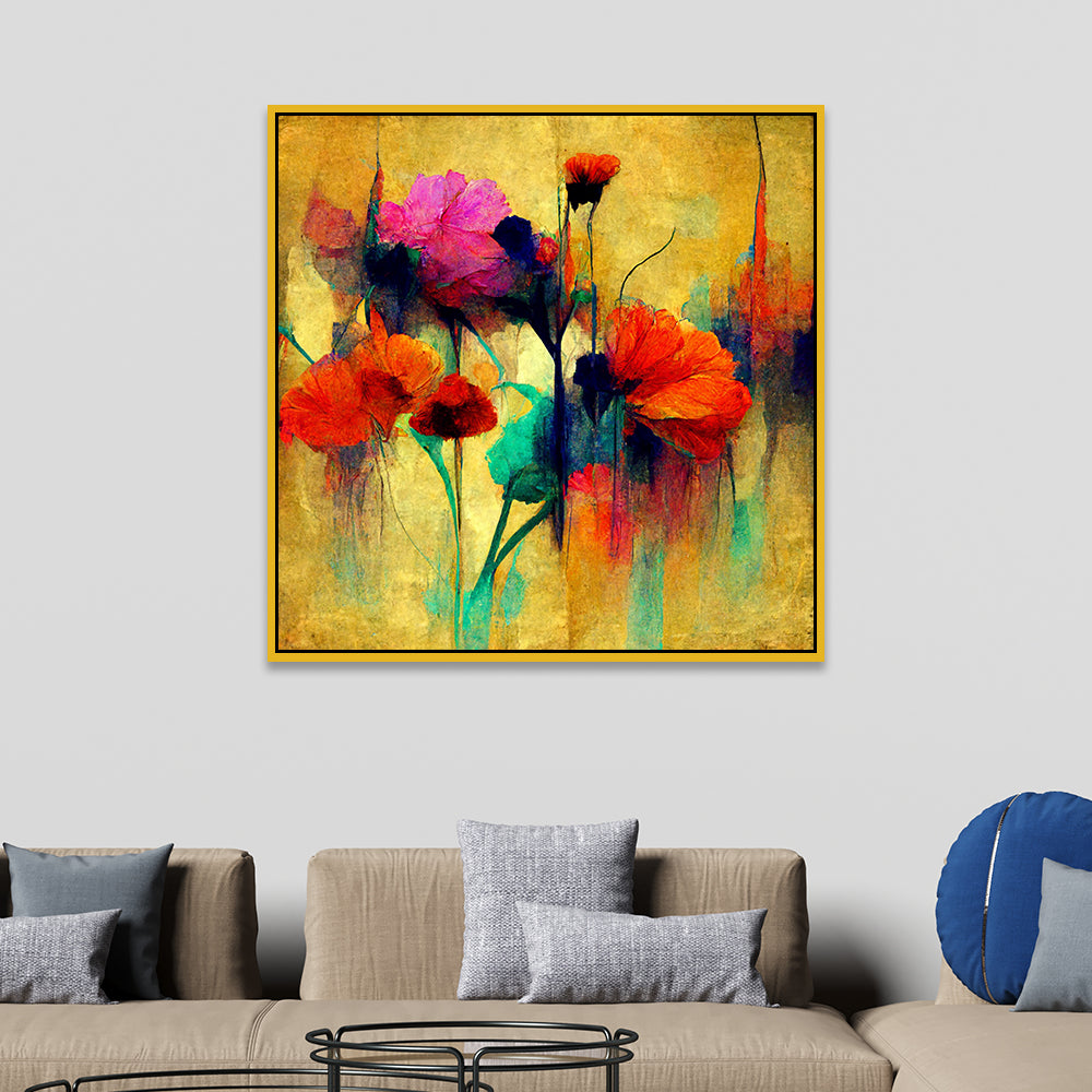 Elegant Abstract Botanical Square Floral Canvas Wall Painting