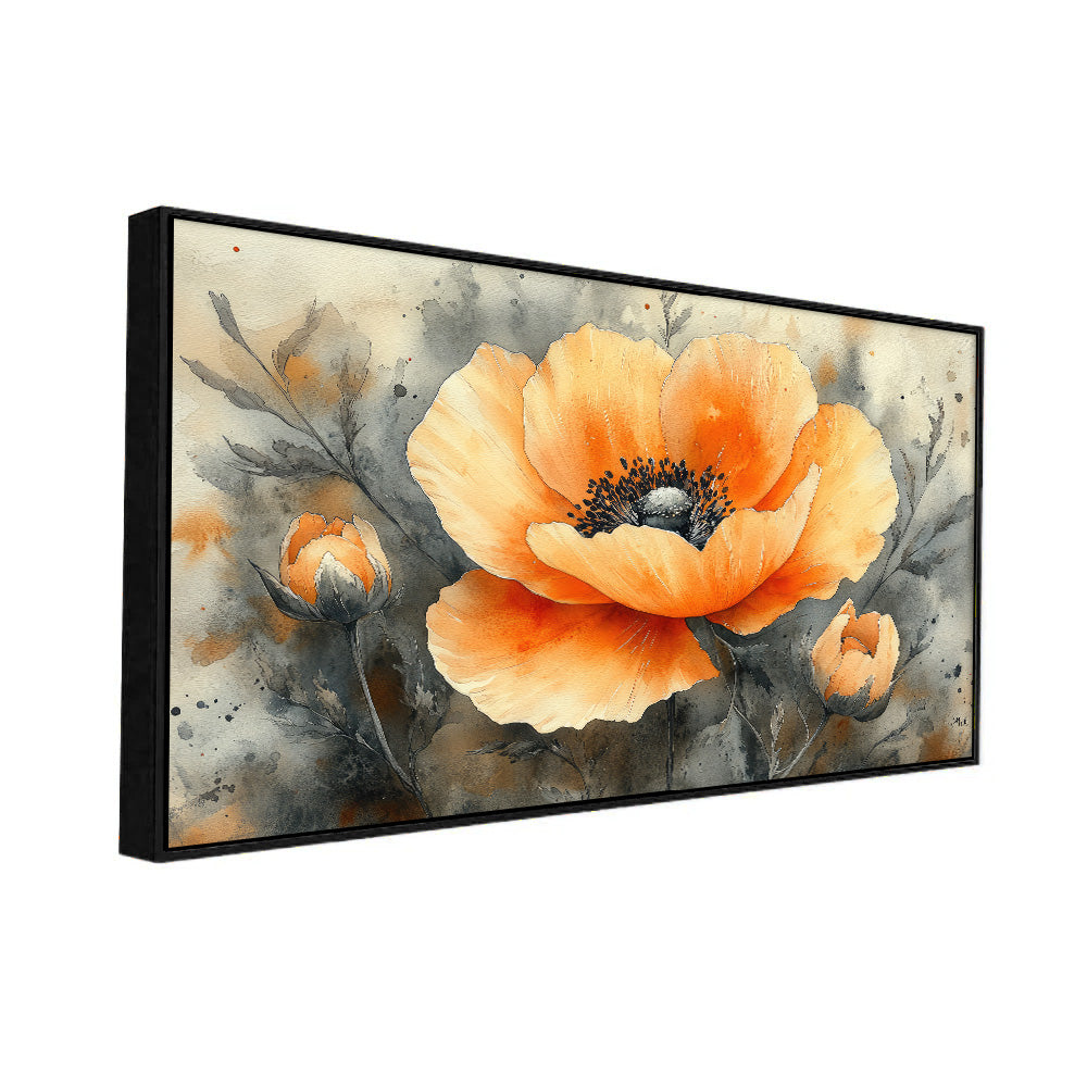 Elegant Abstract Flower Illustration Floating Frame Canvas Wall Painting