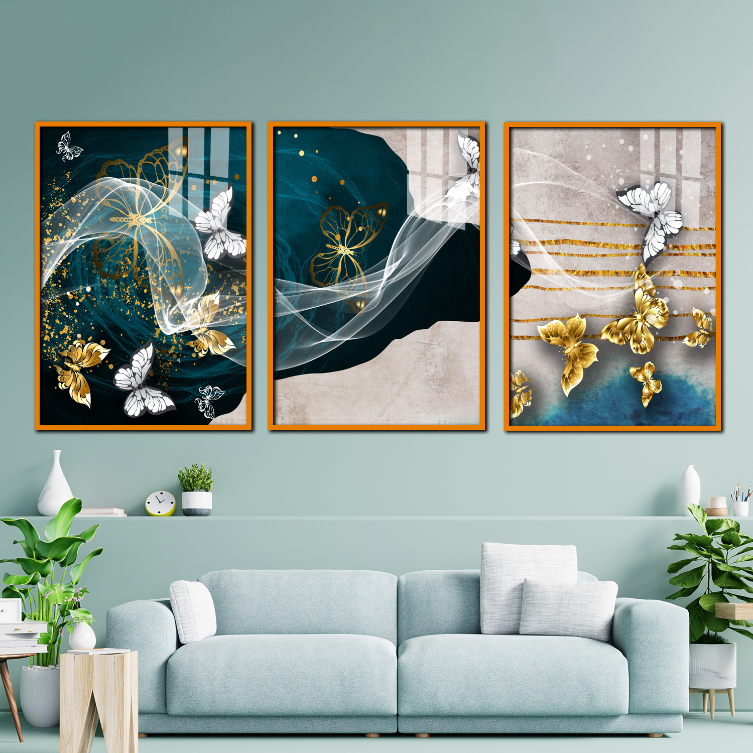 Elegant Butterfly & Abstract Flow Acrylic Canvas Art - 3 Piece Wall Decor Set