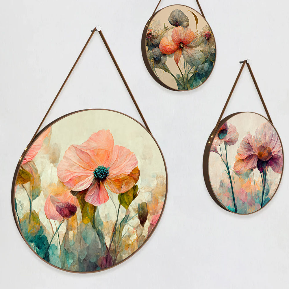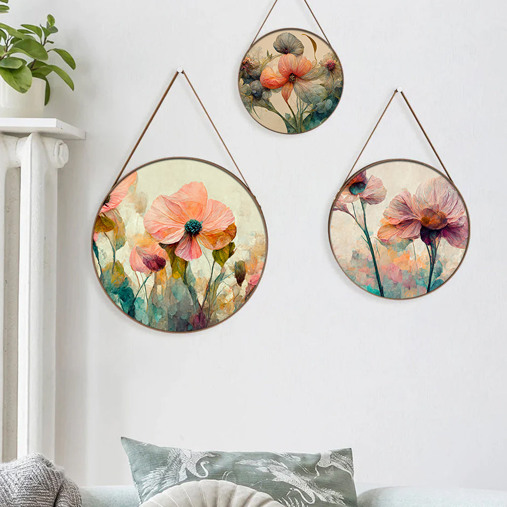 Elegant Pink Floral Round Framed Canvas Wall Paintings - Set of 3