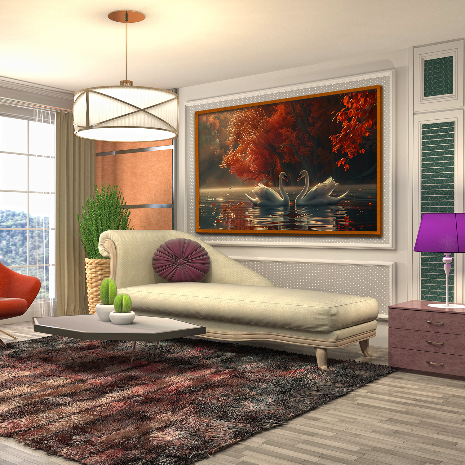 Elegant Swans Birds Gliding Serene Lake Surrounded Canvas Printed Wall Paintings