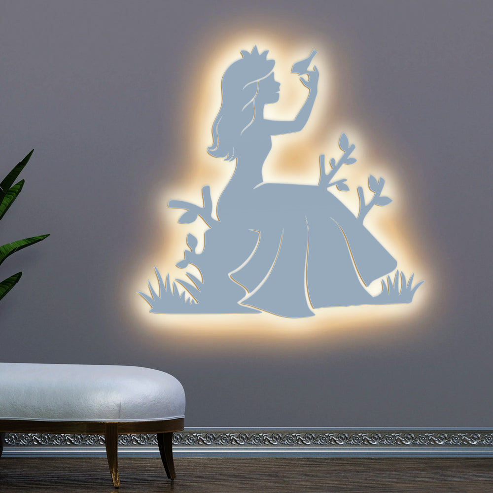 Fairytale Princess Backlit Wooden Wall Decor with LED Night Light Walnut Finish