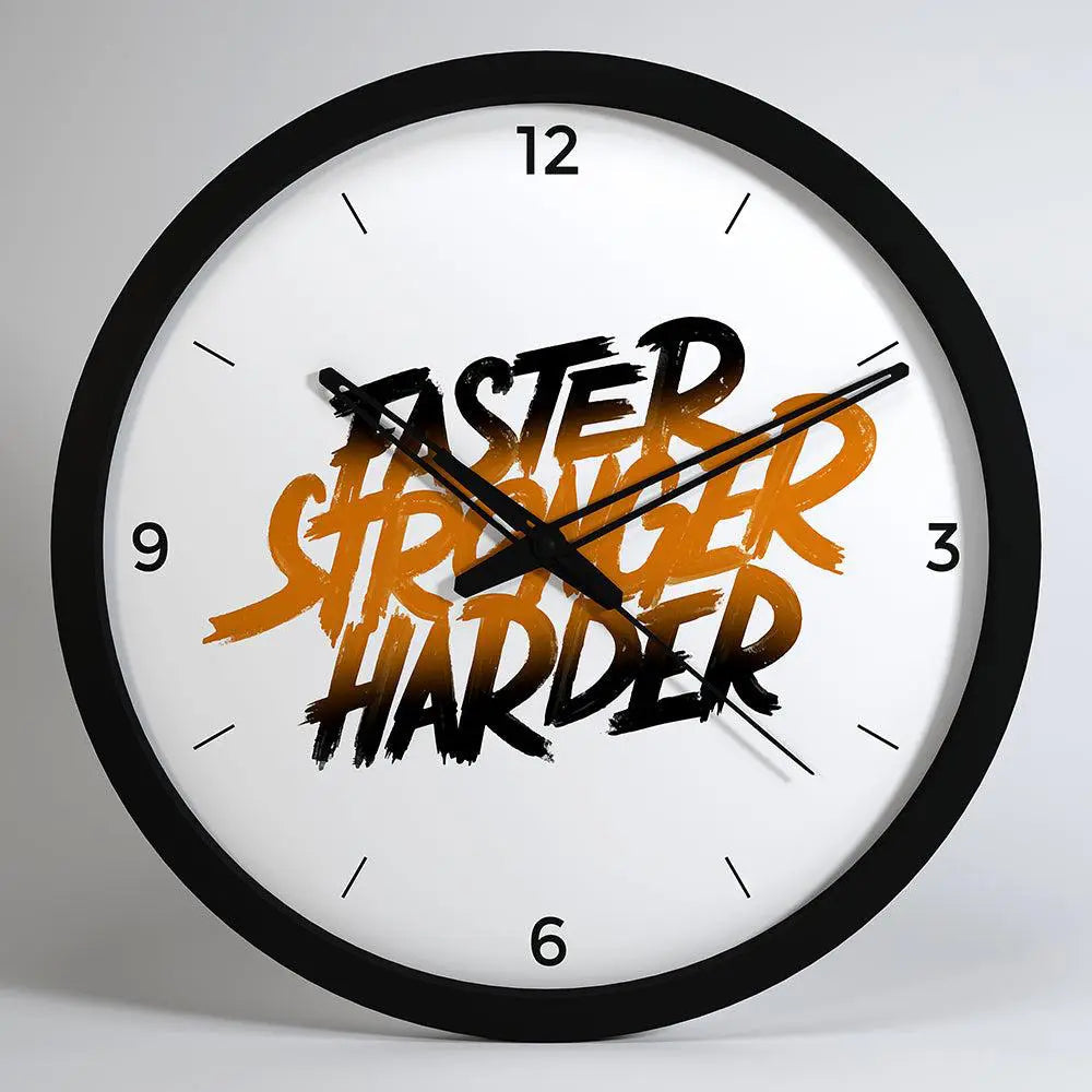 Faster, Stronger & Harder Typographic Gym Wall Clock- Black Frame