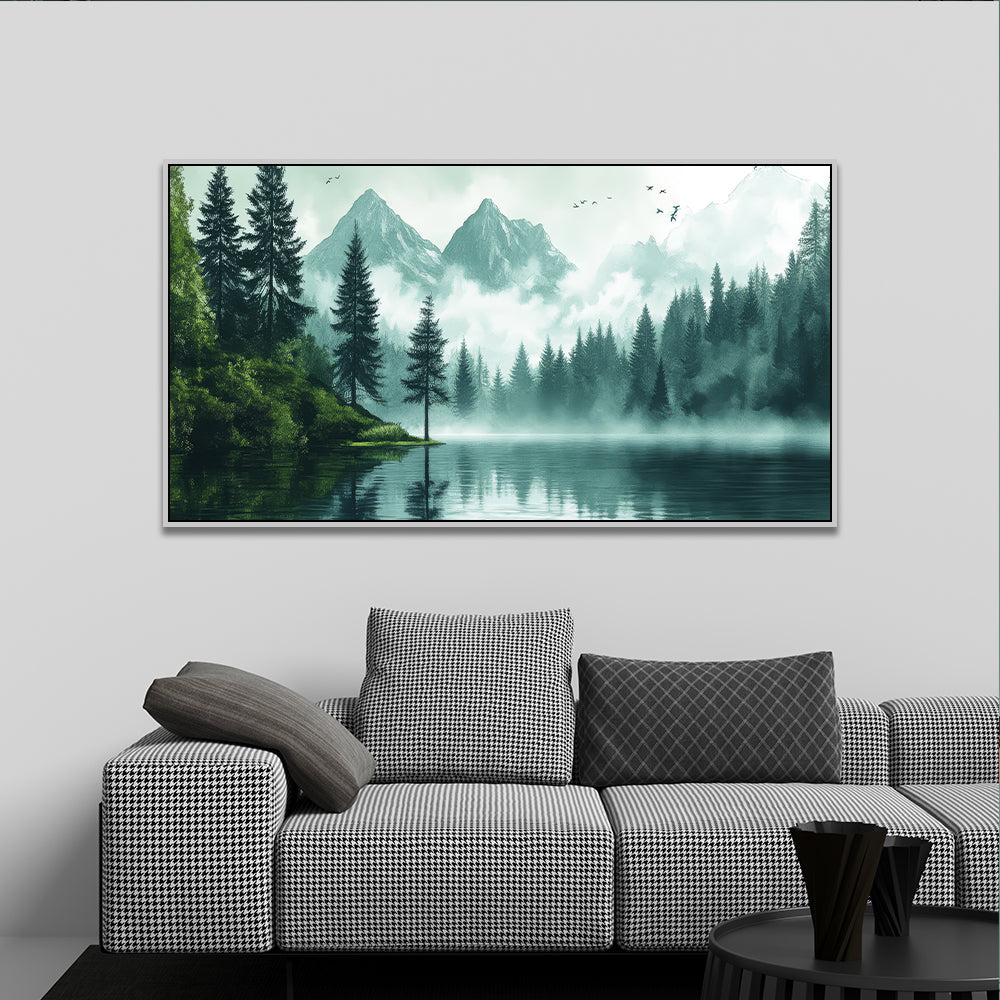 Foggy Pine Forest Misty Nature Landscape Canvas Wall Painting