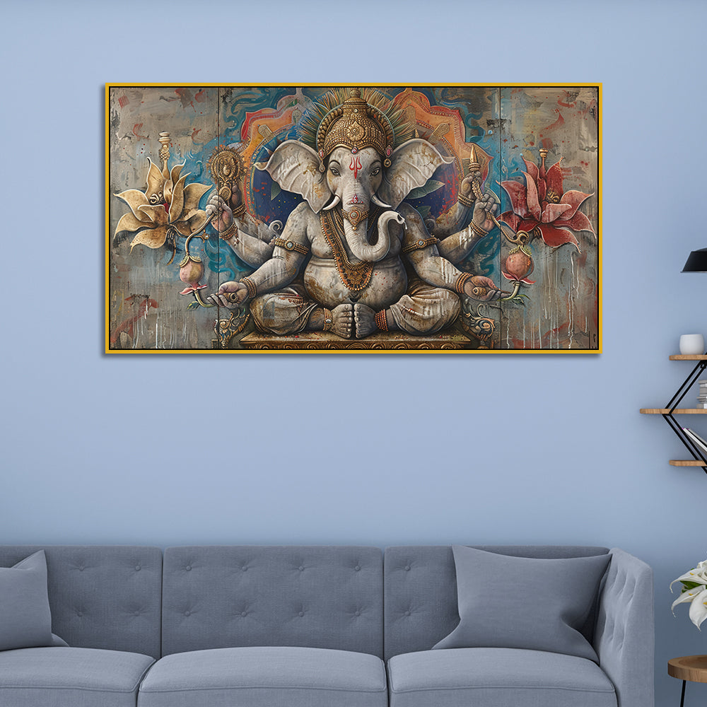 Ganesh Ji Vintage Wall Painting – Sacred Art for Interiors