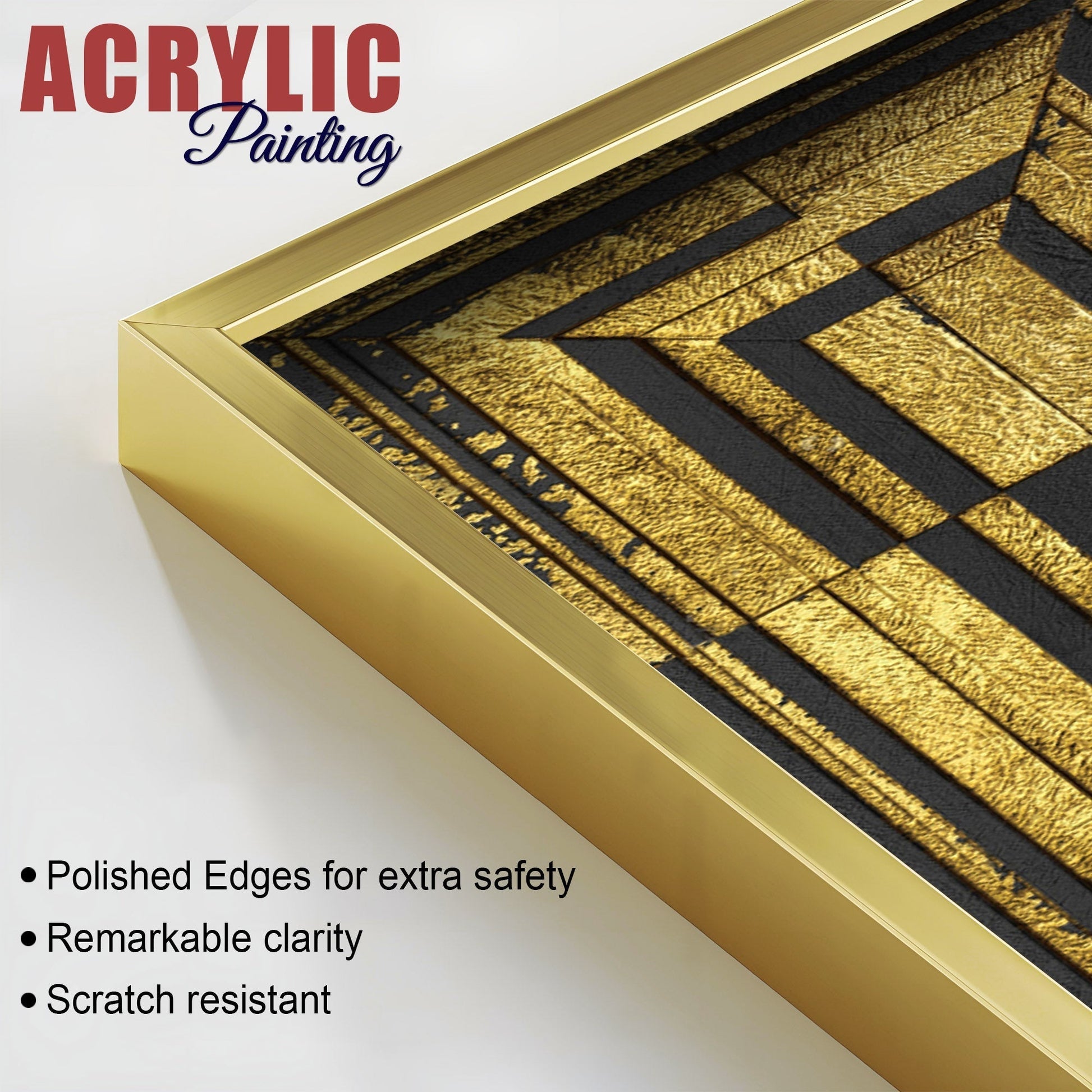 Golden Abstract Artistic Shapes Art Acrylic Floating Wall Painting Set of 2