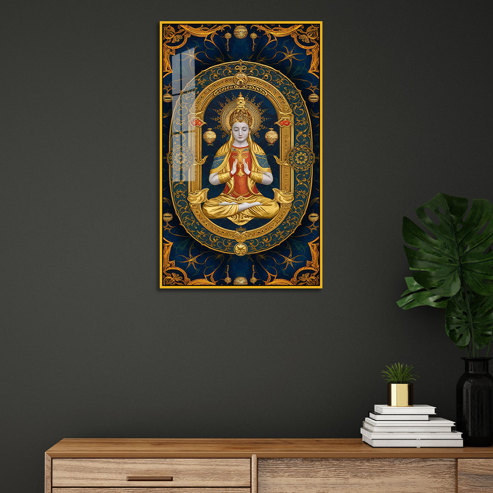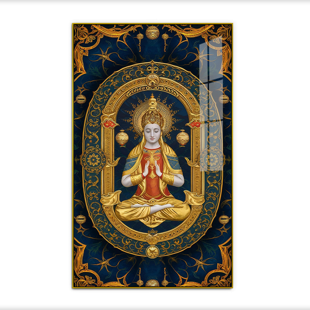 Golden Framed Buddha Acrylic Wall Paintings in Ornate Blue Mandala