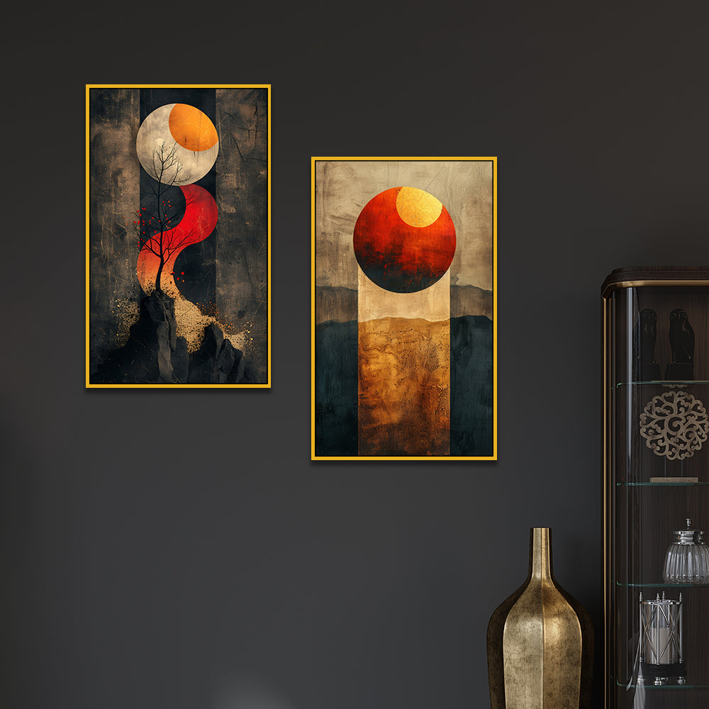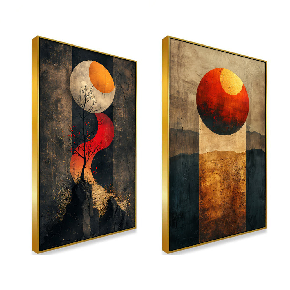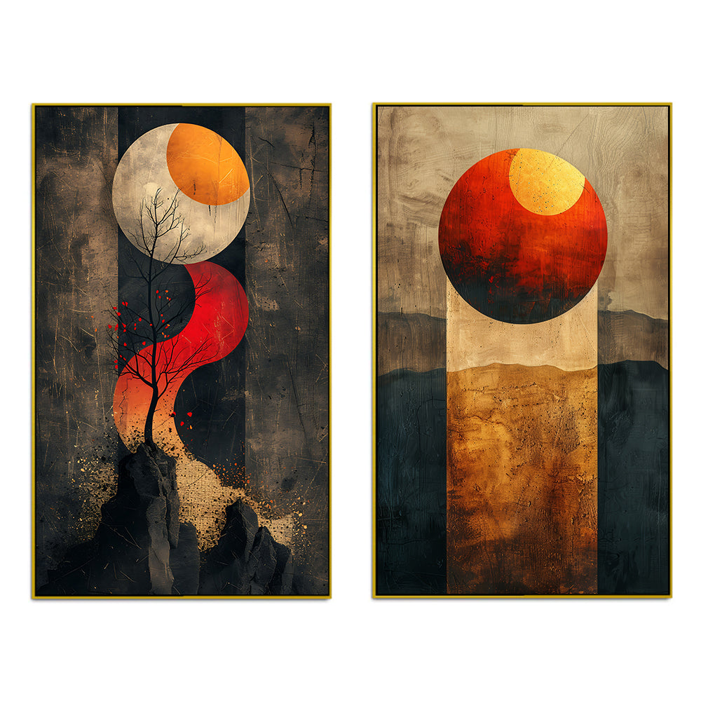 Golden Red Abstract Theme Canvas Wall Painting Two Pieces