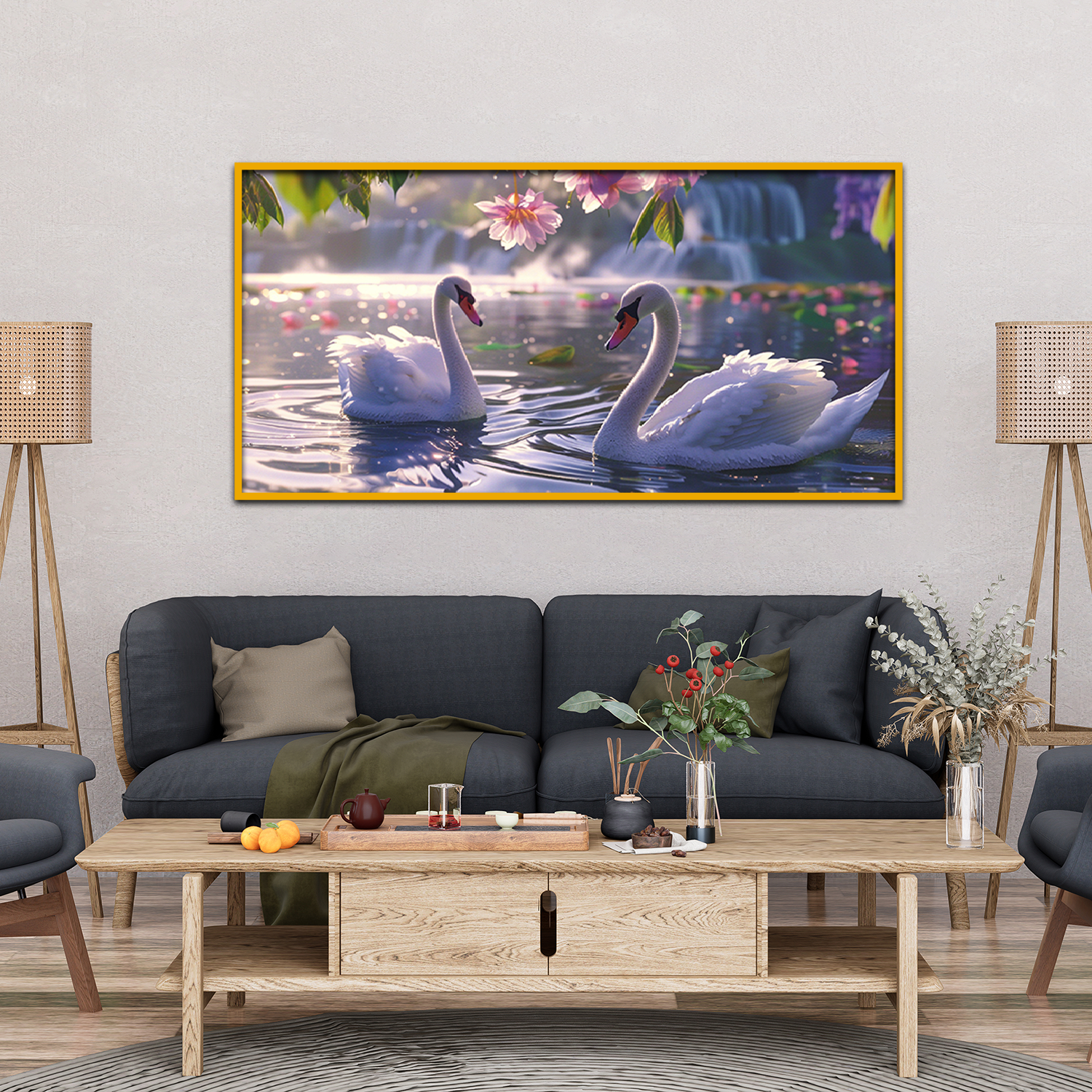 Graceful Swans Swimming Pond Octane Render Canvas Wall Paintings