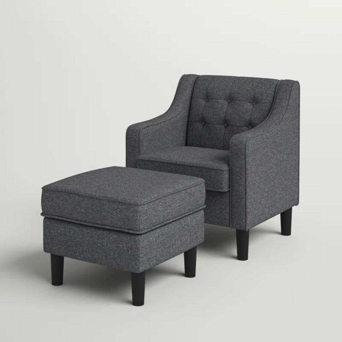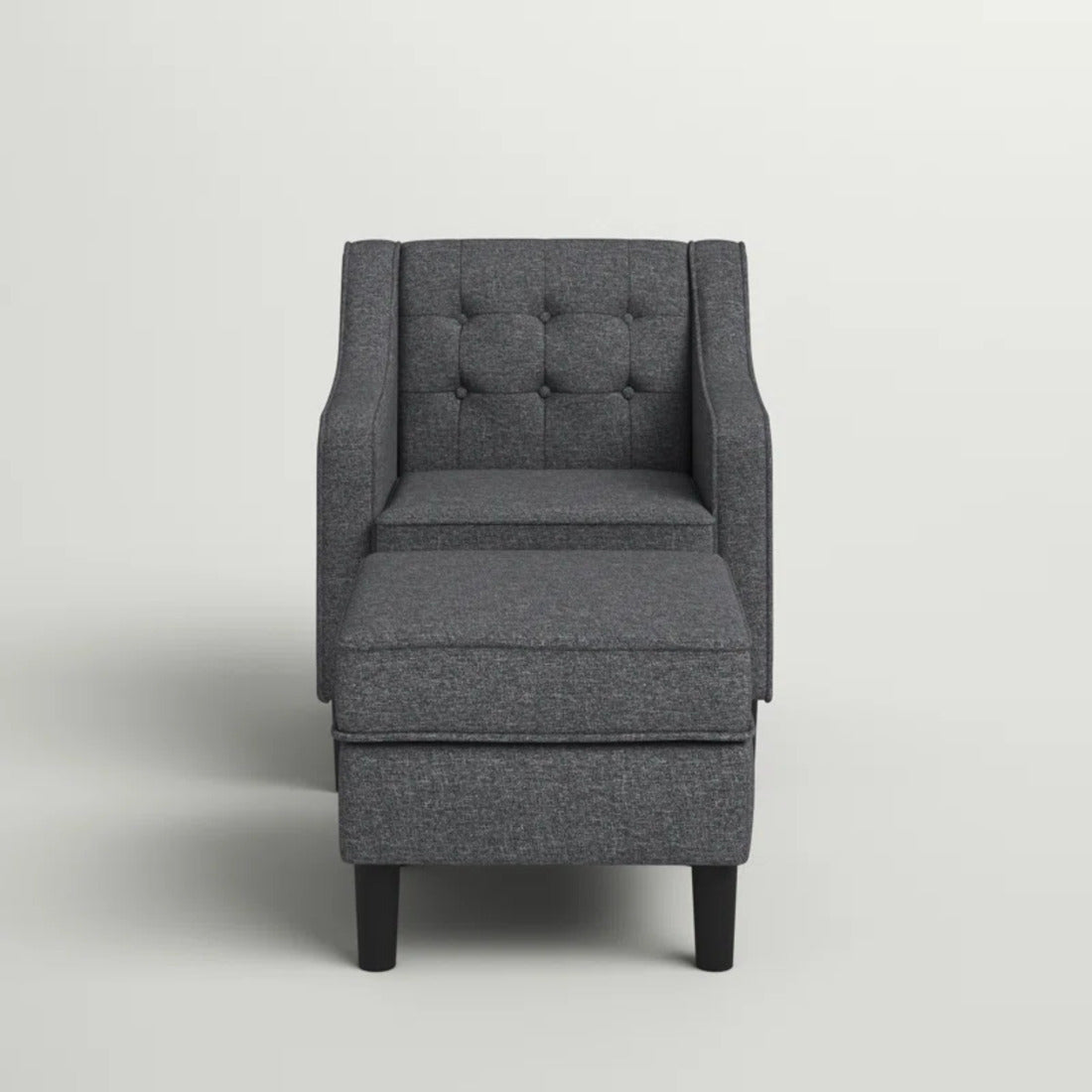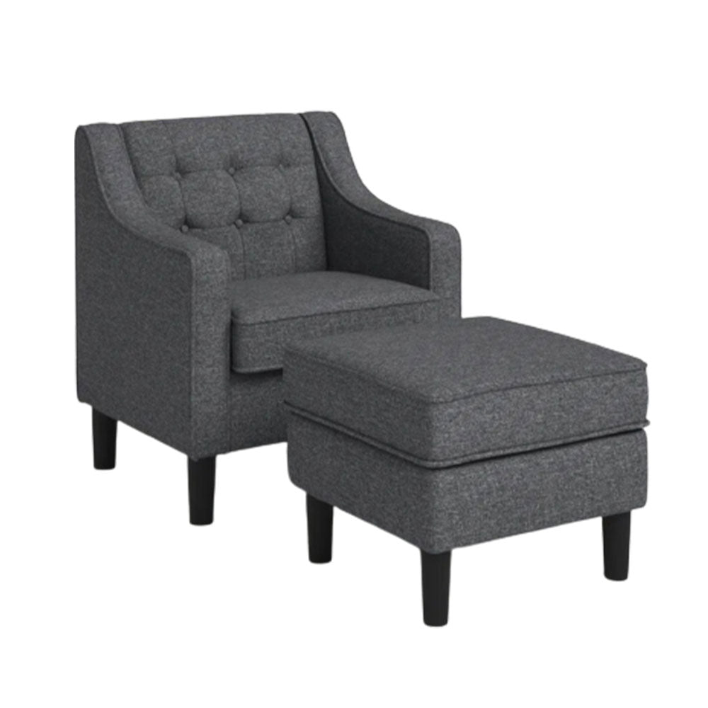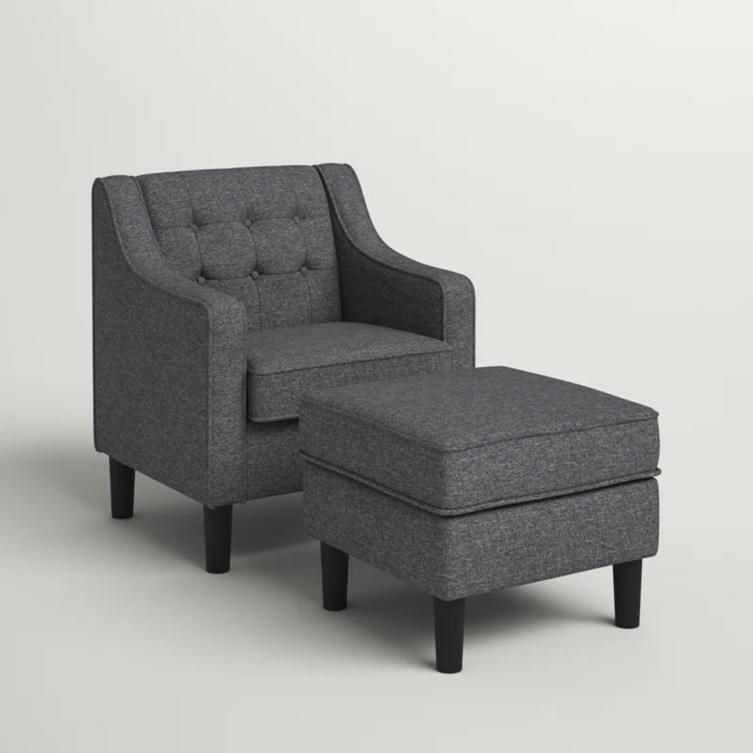 Grey Tufted Comfy Lounge Chair With Ottoman