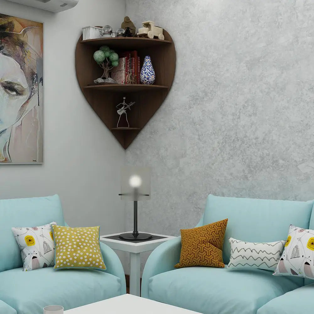 Heart Shape Wood Corner Wall Shelf / Book Shelf,Walnut Finish