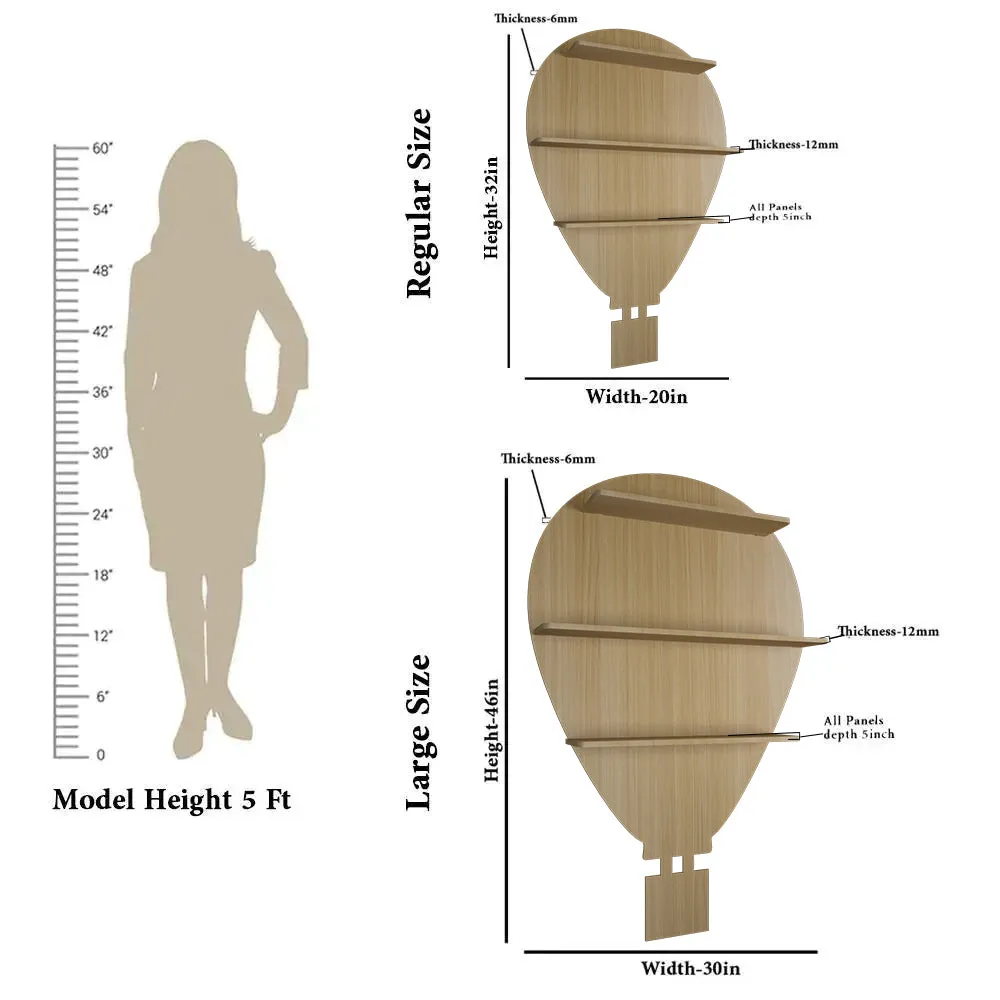 Hot Air Balloon Backlit Wood Wall Shelf / Book Shelf / Night Light, Light Oak Finish