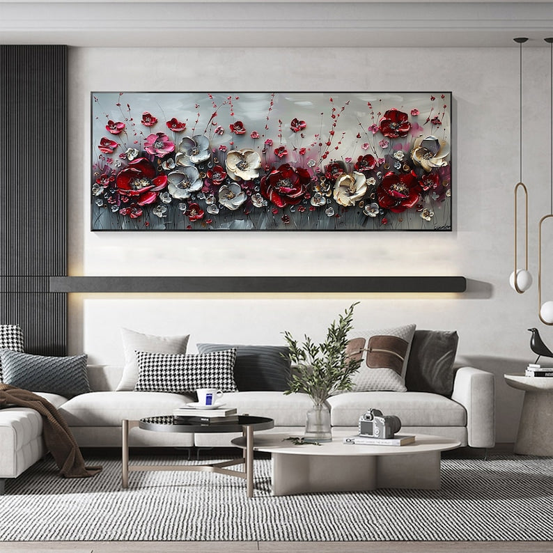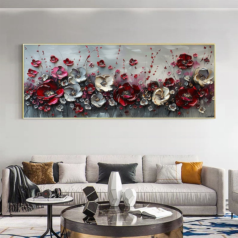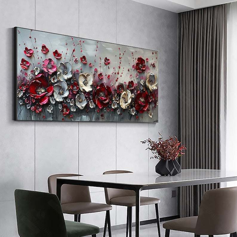 Large Abstract Flower Landscape Painting on Canvas Wall Art, Texture Wall Art,original Red Floral Wall Art Modern Wall Decor for Bedroom Online
