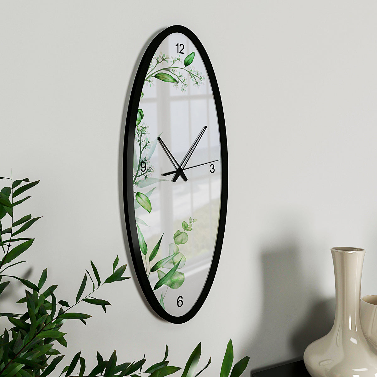 Leafy Touch Wooden Oval Wall Clock
