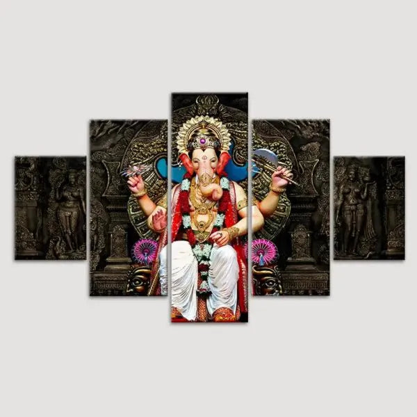 Lord Ganesha Canvas Wall Paintings 5 Piece Panel Wall Art