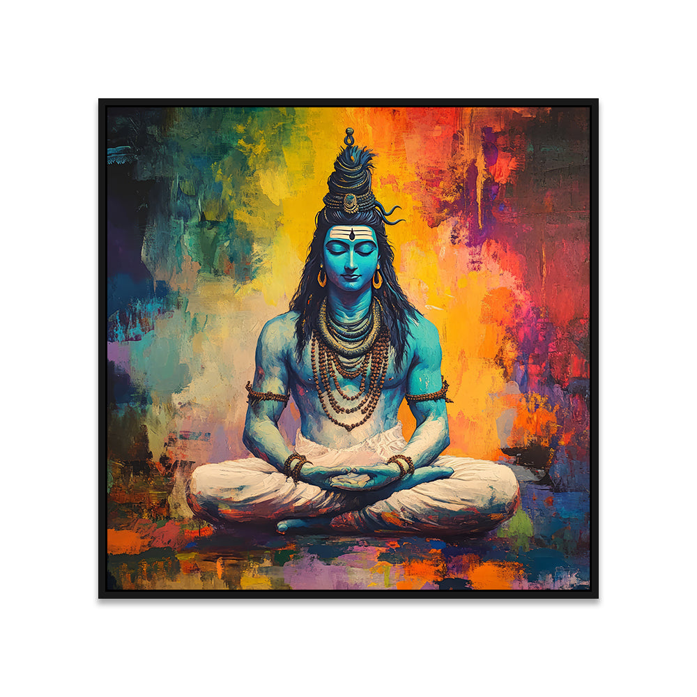 Lord Shiva Meditative Abstract Religious Canvas Wall Painting in Vibrant Colors