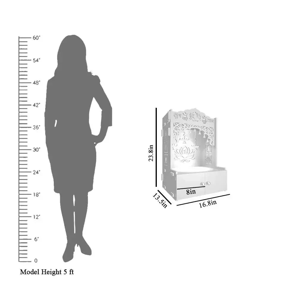 Lotus White Finish Wooden Door Wall Temple for Home With Inbuilt focus Lights & Spacious Shelf