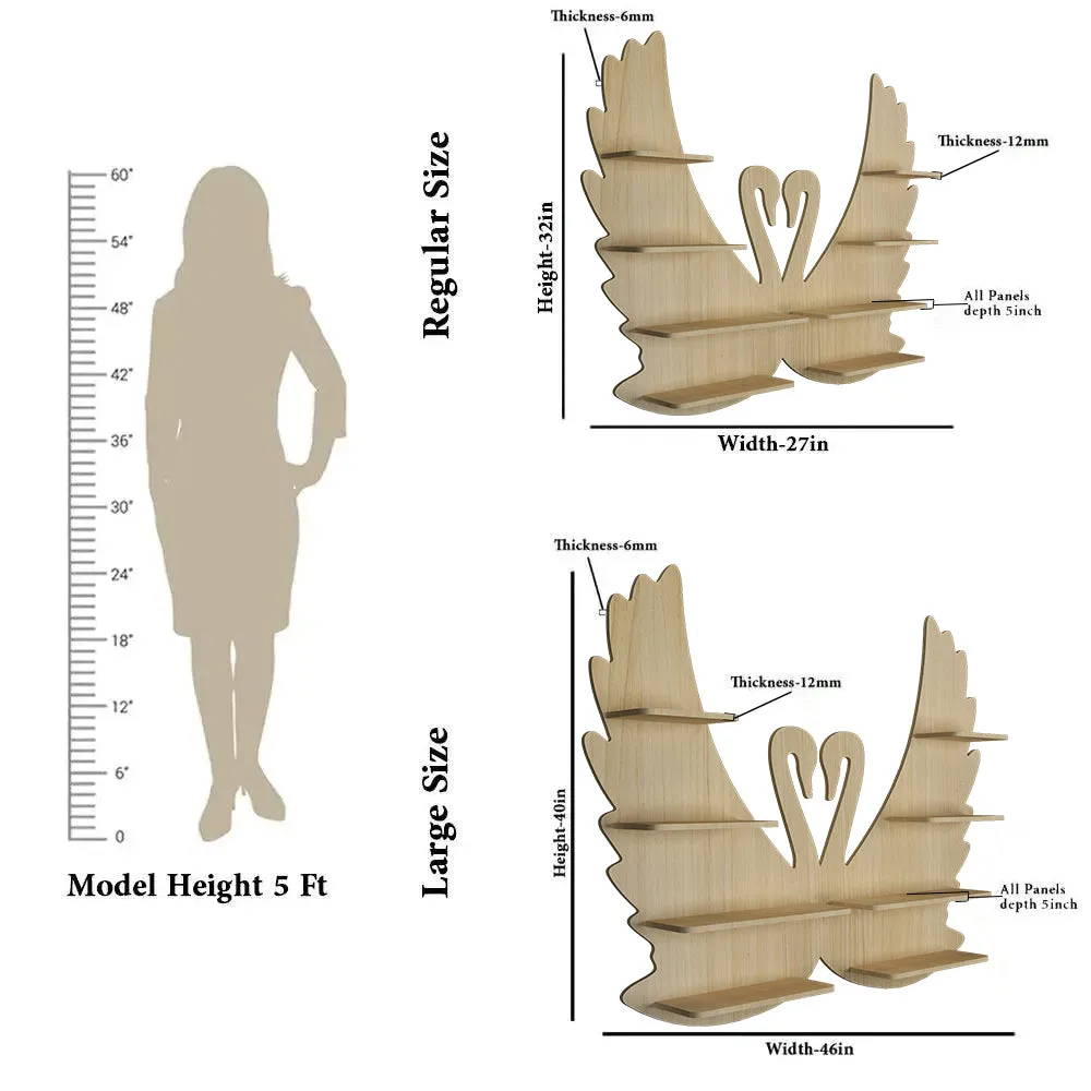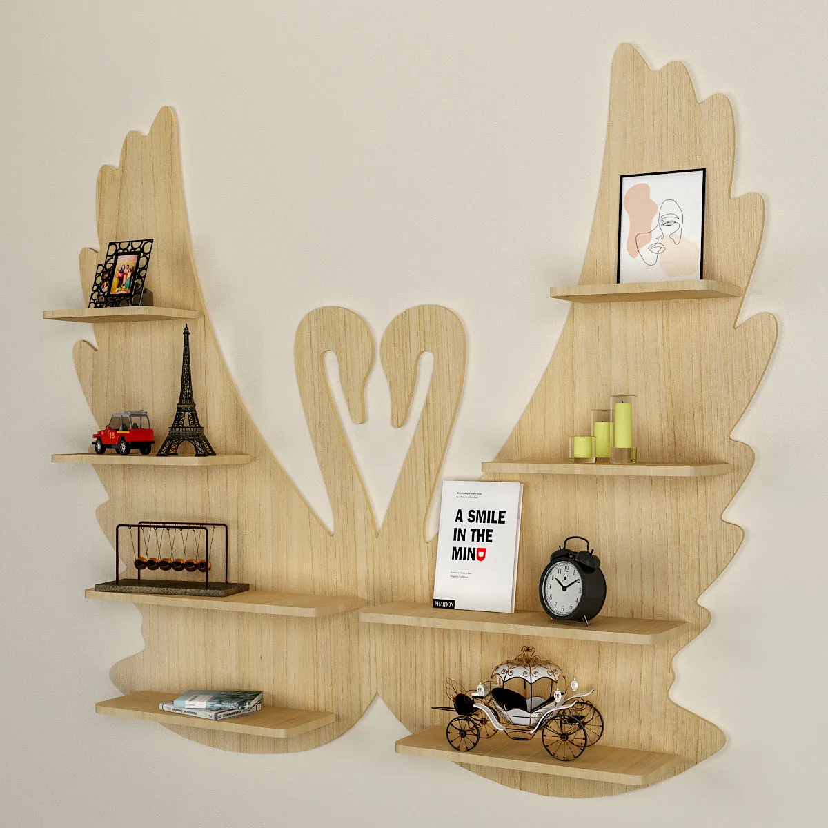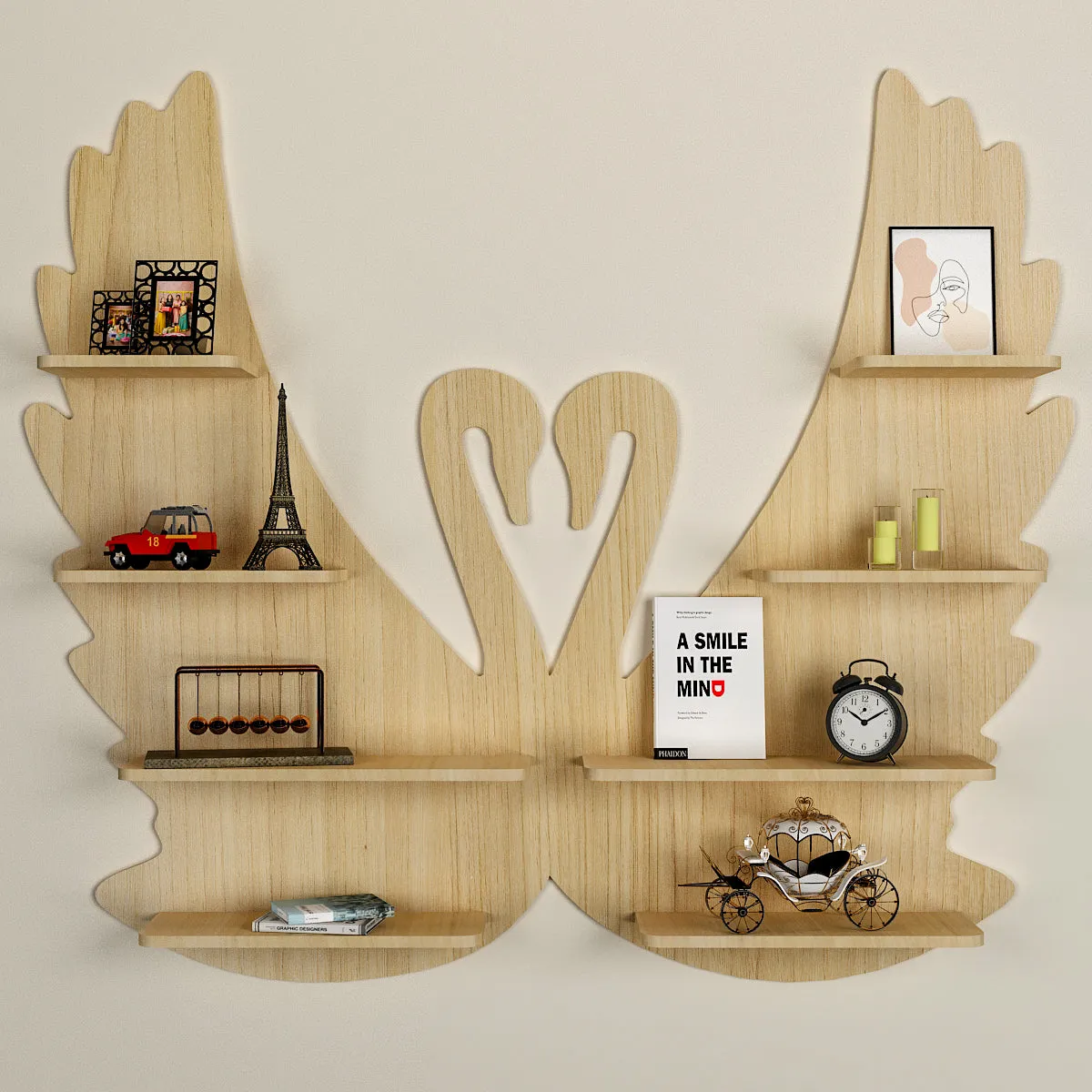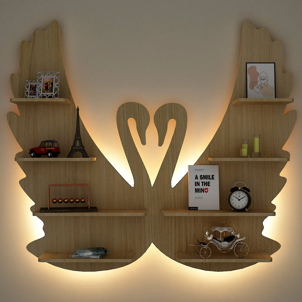 Loving Swan Backlit Wood Wall Shelf / Book Shelf / Night Light, Light Oak Finish