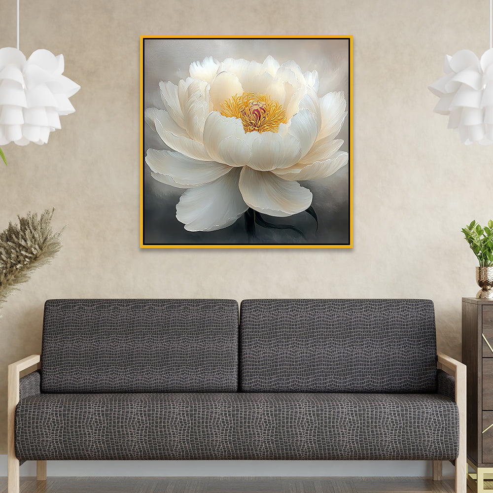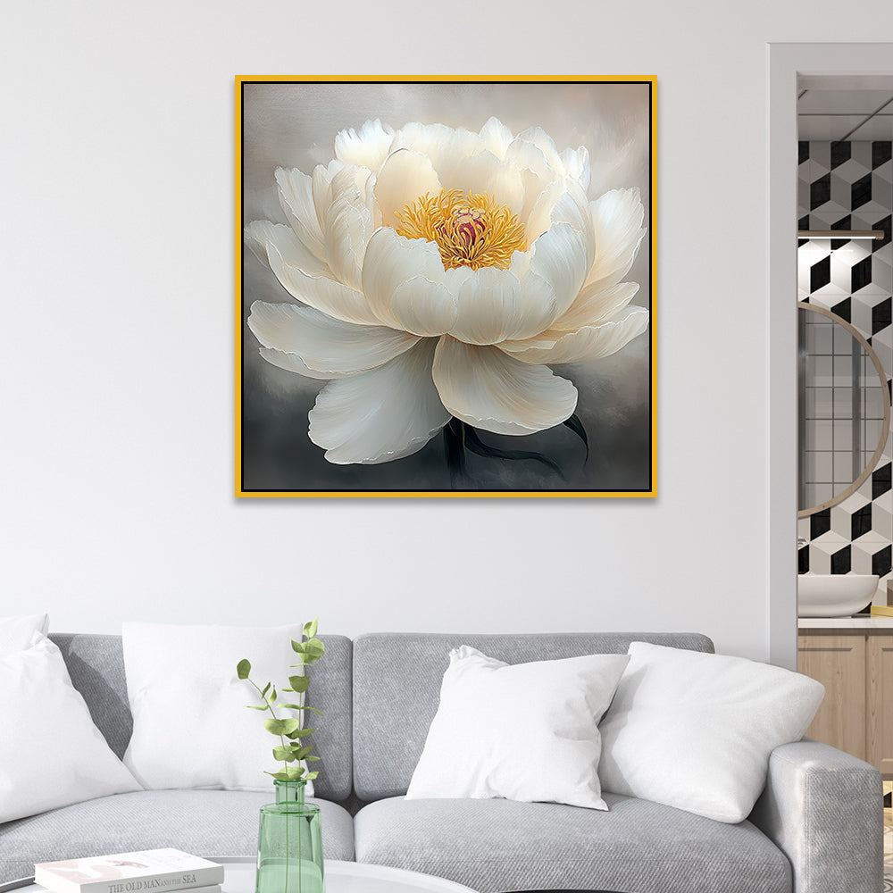 Luxurious Canvas Painting of 3d White Flower with Yellow Petals